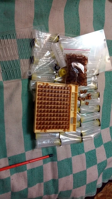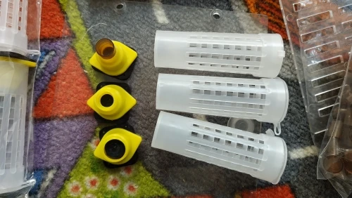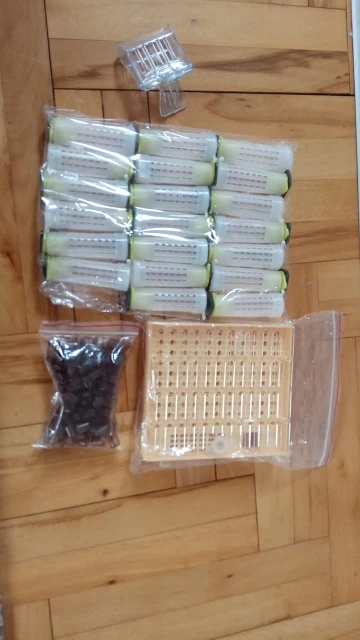 Комплект ,после оплаты,был отправлен продавцом моментально!Отлично упакован в пузырьку и заскотчёван ,доставлен в целости и сохранности!Продавец бонусом вложил клеточку-прищепку для подсадки матки.Описание соответствует вложенному товару!Бигудюшки на держателях крепятся плотно с небольшим натягом,а вот мисочки в держателях слабоваты ,посадим на воск.Мисочки в никоте держатся плотно.Вообщем всё устраивает,аж на руки чешутся попробовать.«Спасибо тебе наш китайский друг»!!!