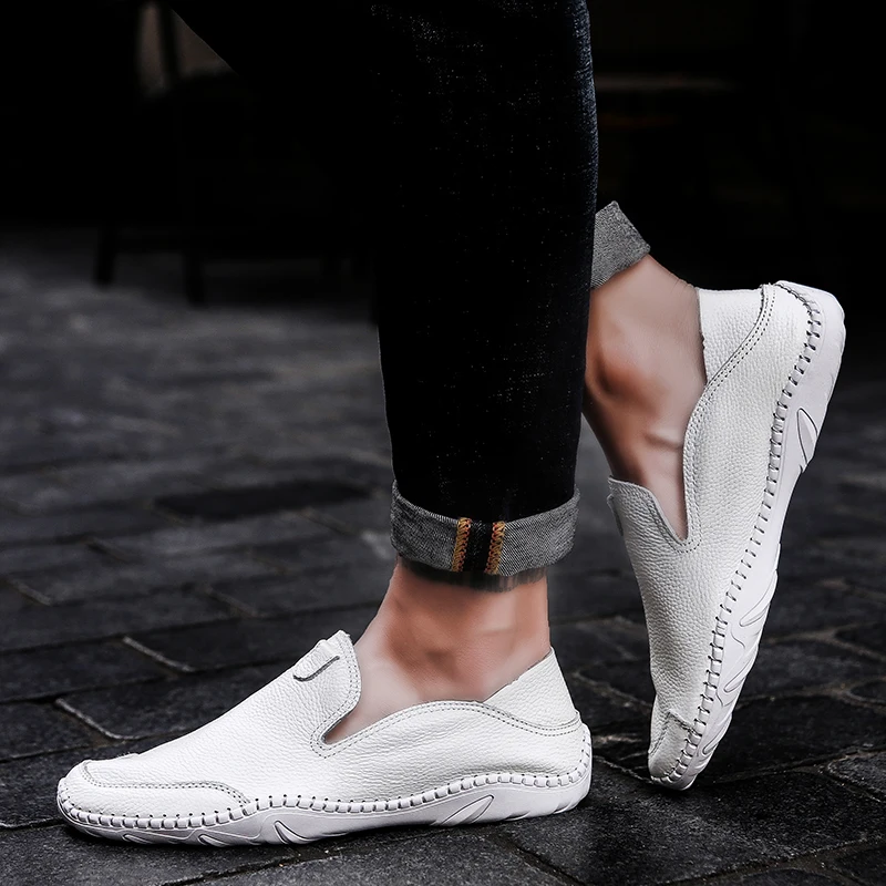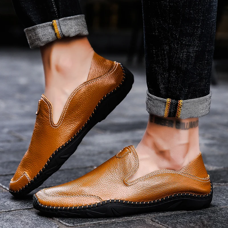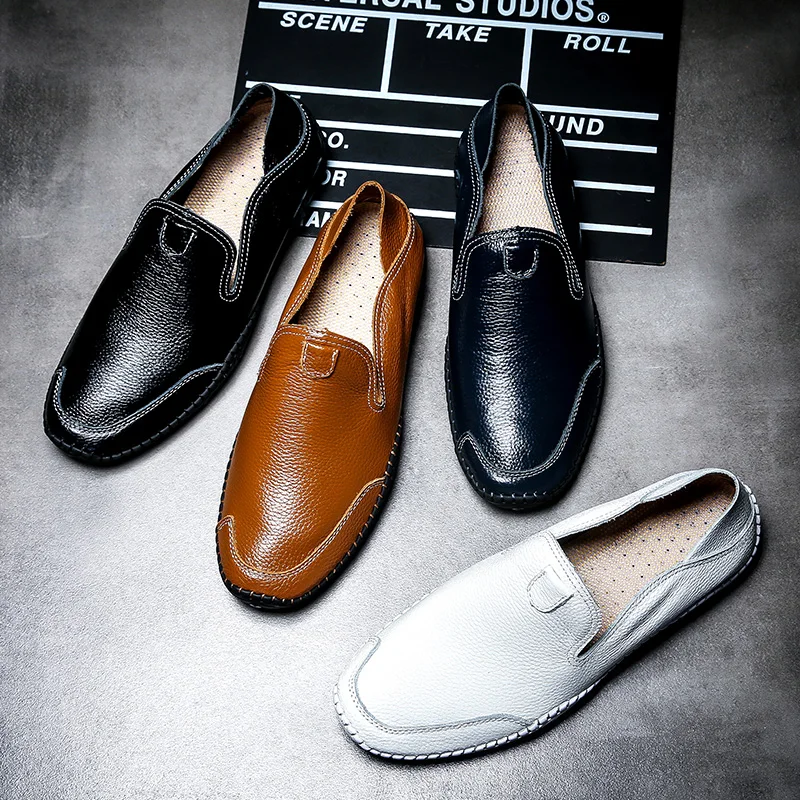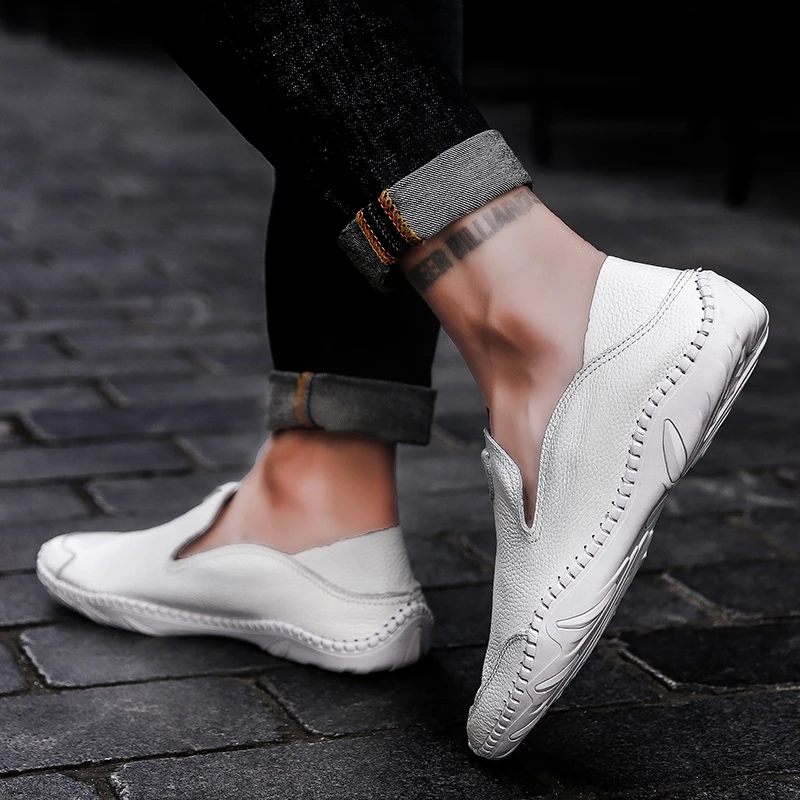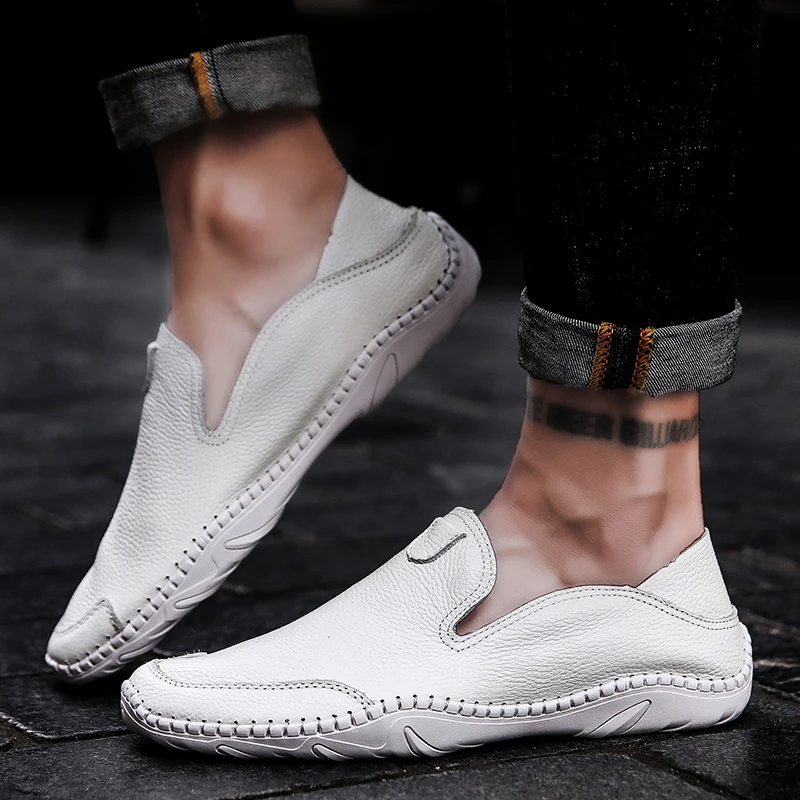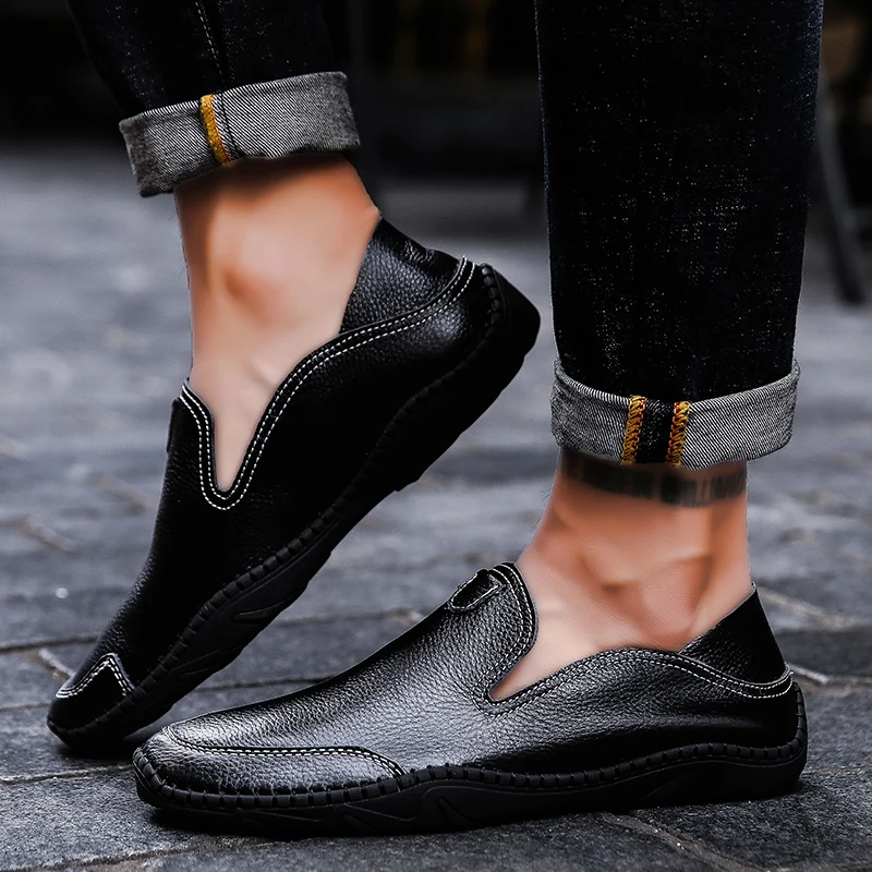 Мужская повседневная обувь, удобная обувь из натуральной кожи, на плоской подошве, без застежки, 2019