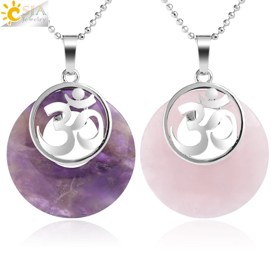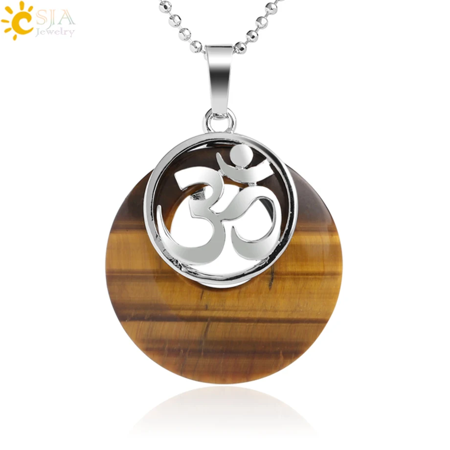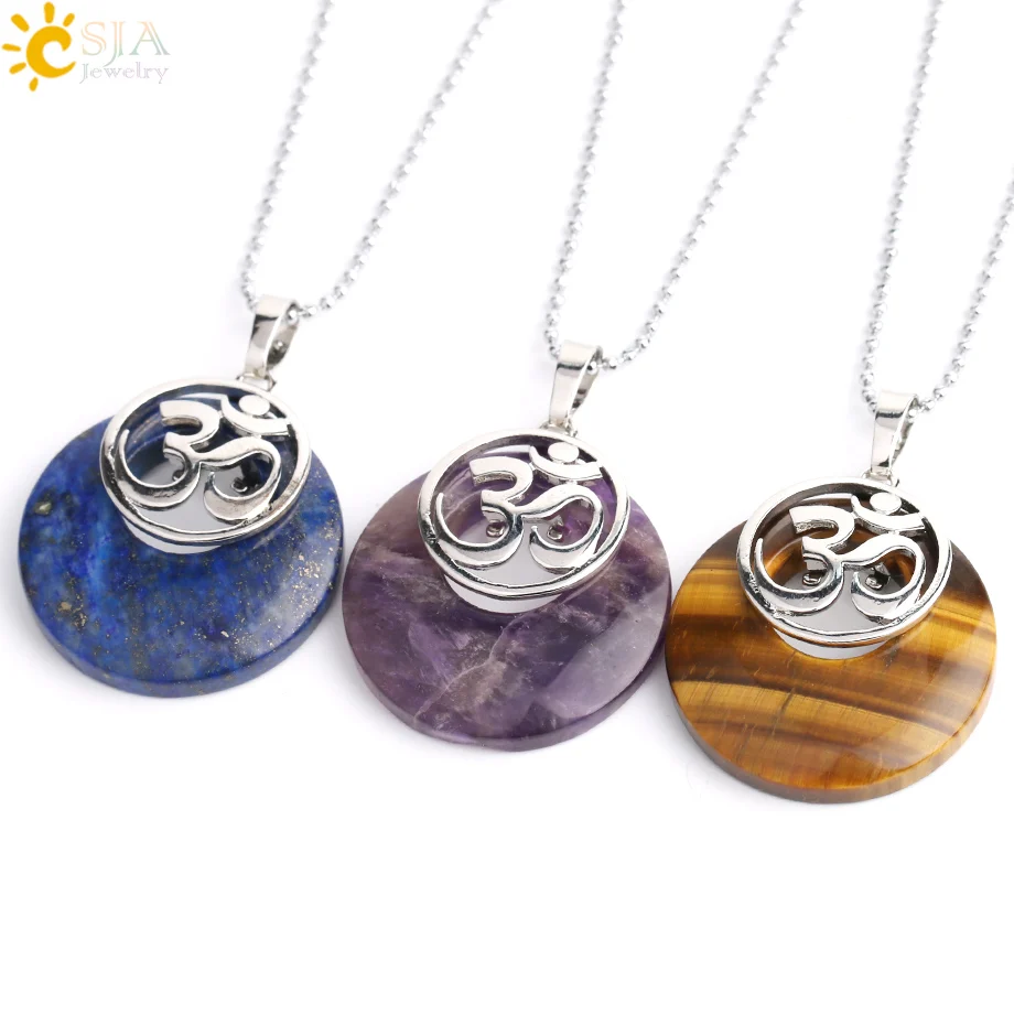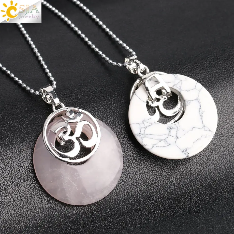 Кулоны и ожерелья CSJA из натурального камня, религиозный 3D символ AUM, полый круглый исцеляющий кулон для женщин и мужчин, Модная бижутерия G050