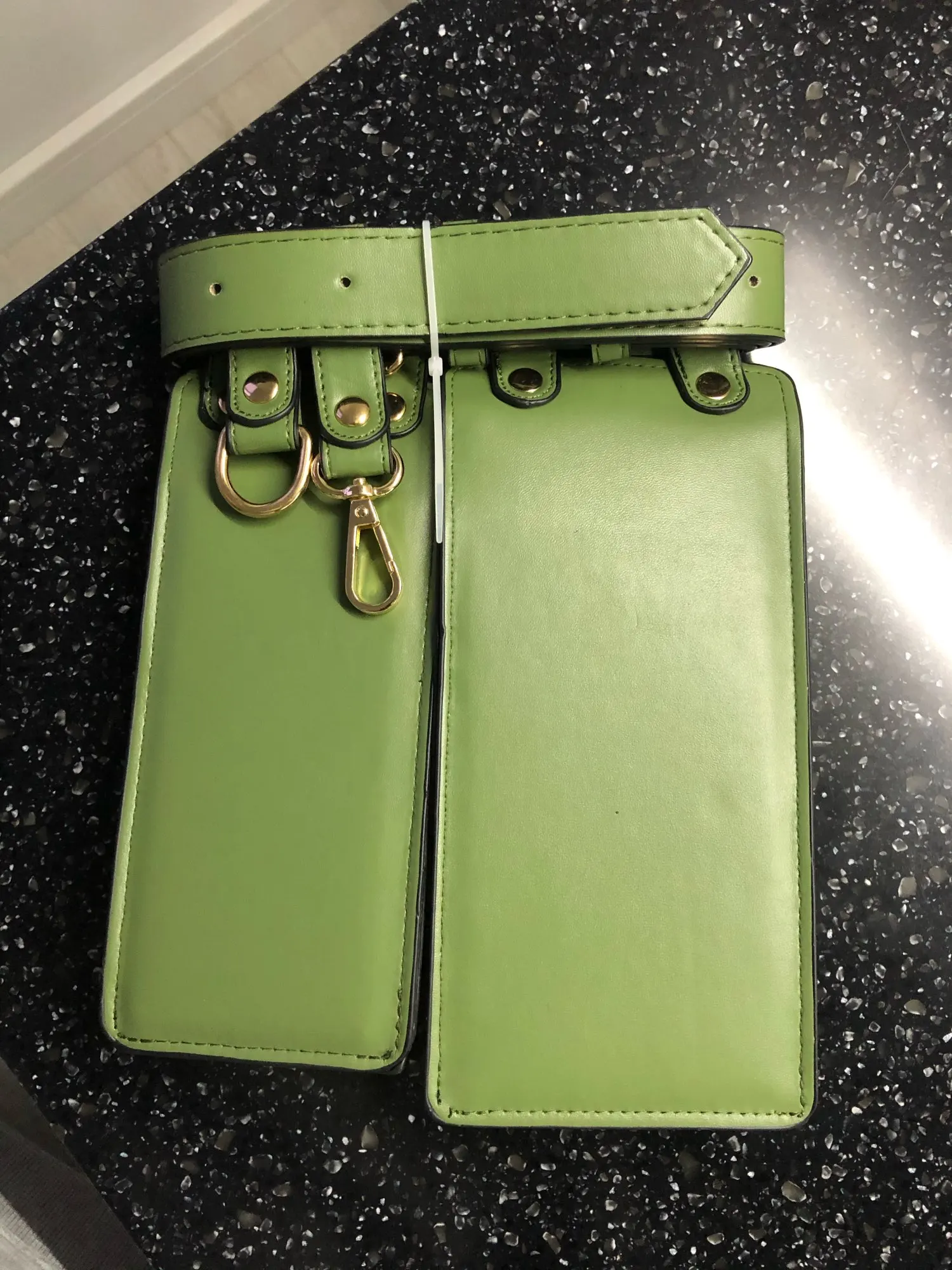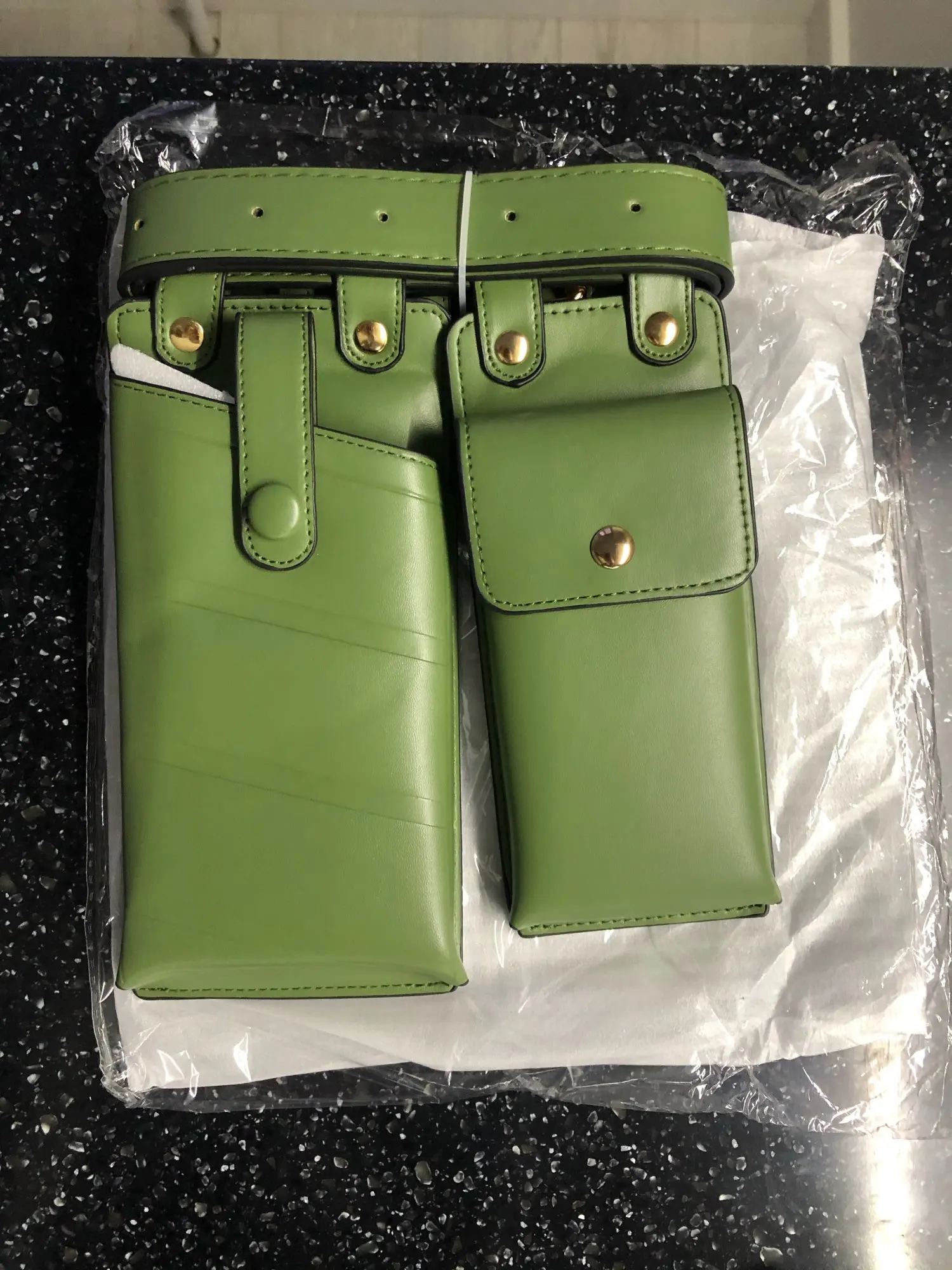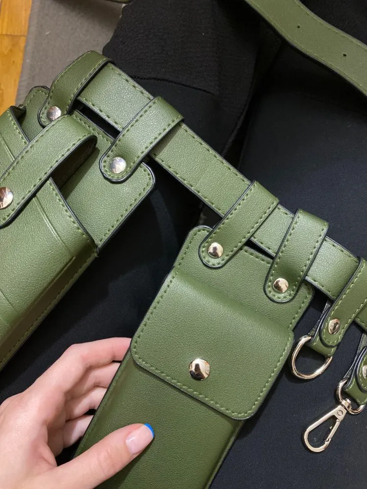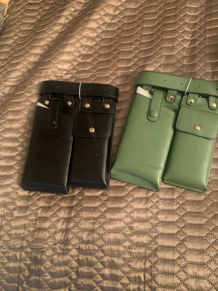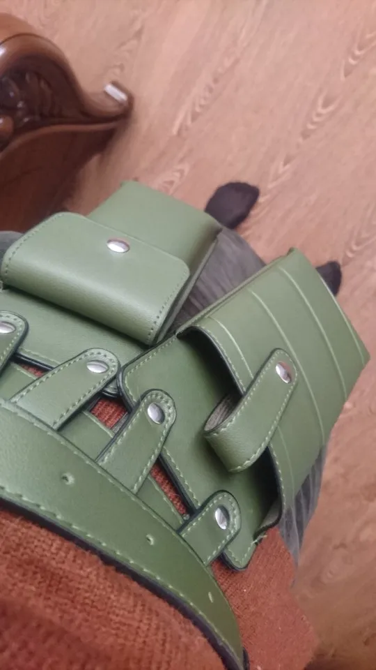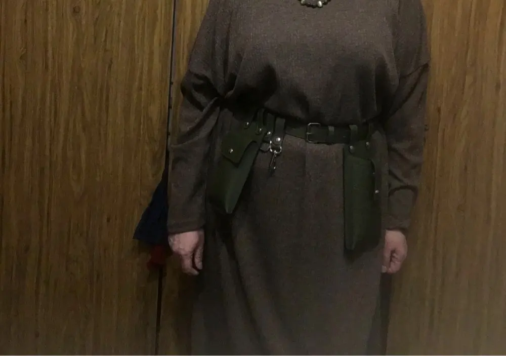 Хороший пояс, грубоват правда сам ремень, сумочки мягкие, внутри обелённых тонкой тканью, единственное прийдется прикалываете ещё дырки поскольку что бы надевать на талию - сильно большой, так отличный, цвет приятный, именно этот зелёные смотрится хорошо)