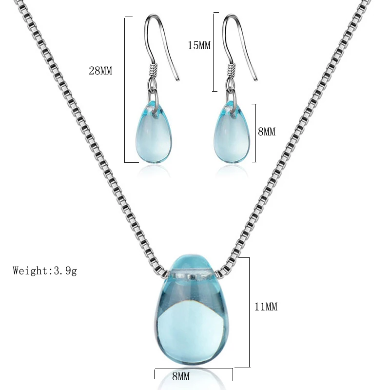 XIYANIKE серебряные фотообои небесно-голубая капля кулон Ювелирные наборы геометрической формы для женщин дружба подарок NE + EA