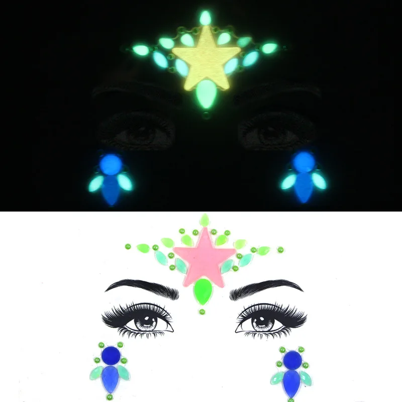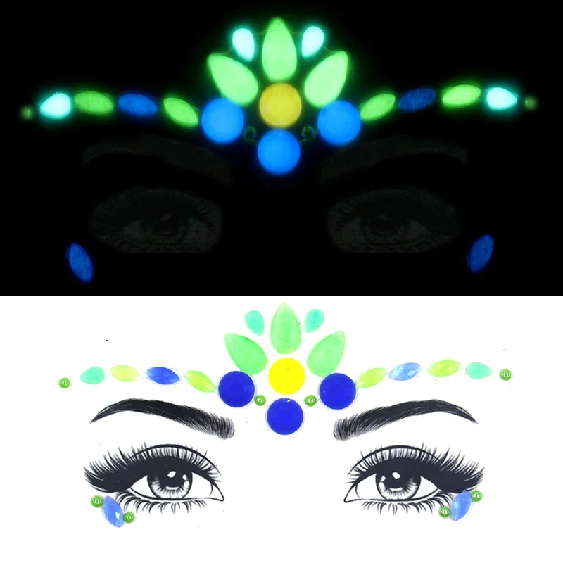 Светящиеся в темноте светящиеся украшения для лица драгоценные камни временные Стикеры для женщин 2021 новые украшения для ночного клуба вечеринки тела стикер