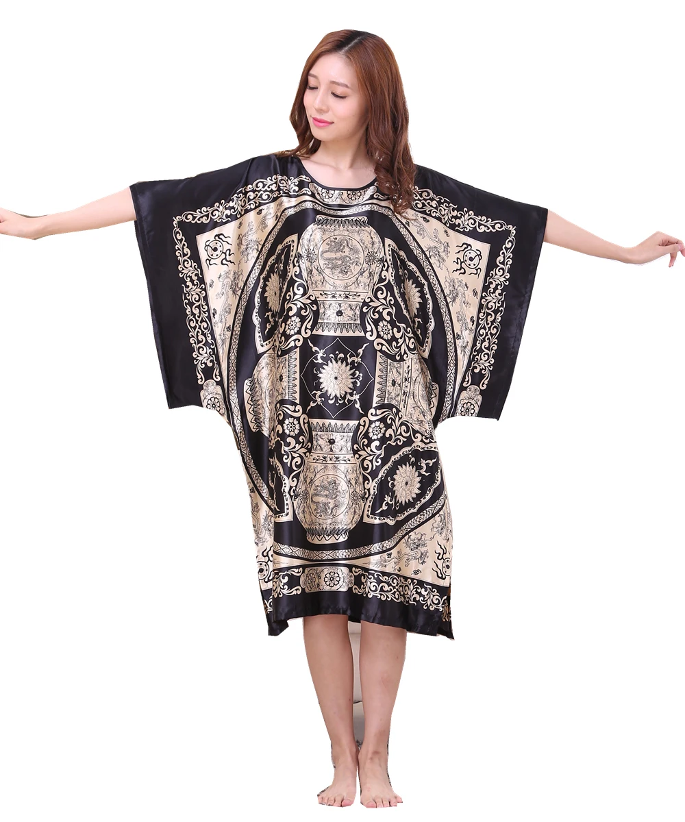 Новинка, женский халат из искусственного шелка черного цвета, новинка, Модная стильная Летняя женская банная одежда, халат, ночная рубашка, одежда для сна, женская пижама 0524