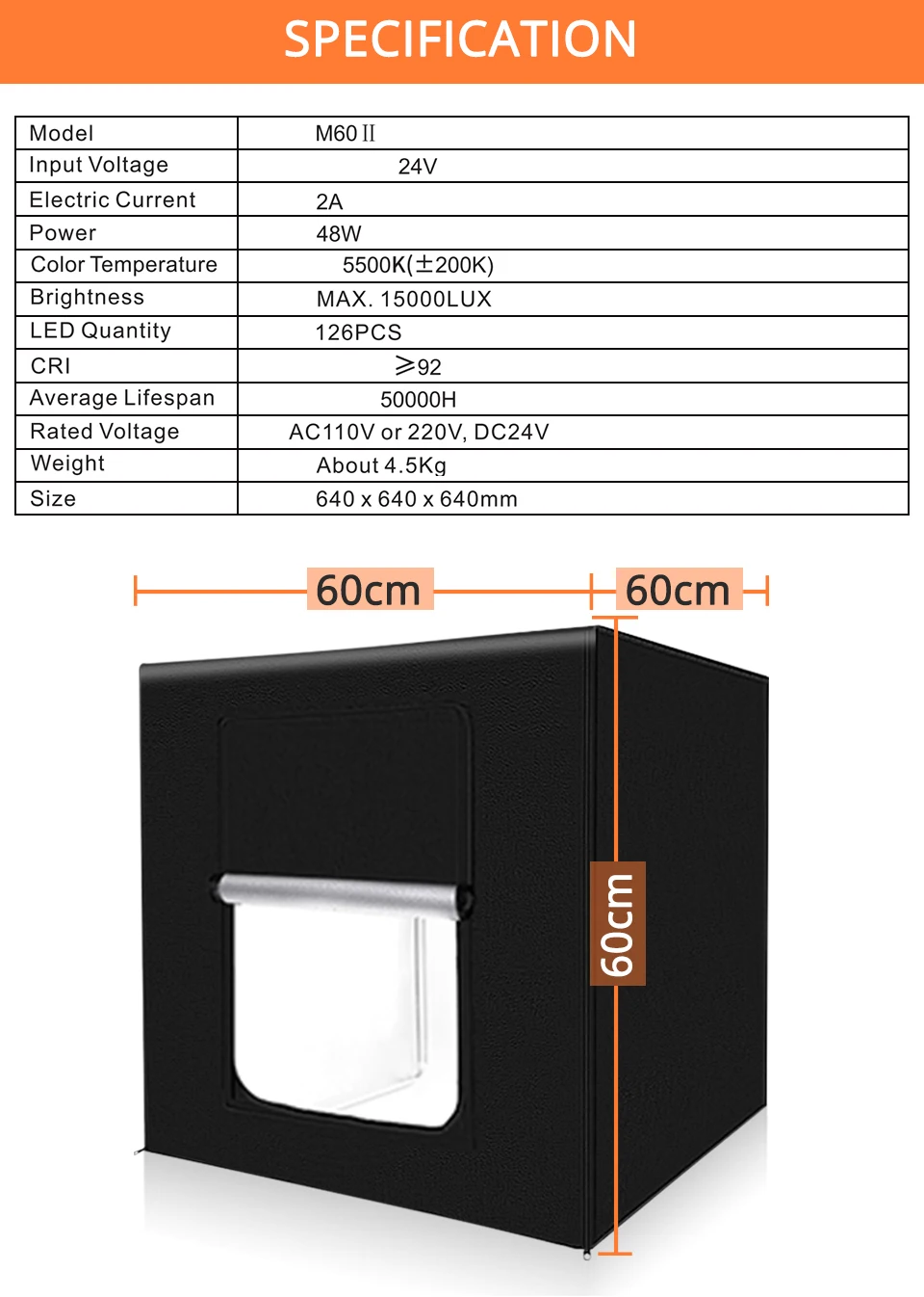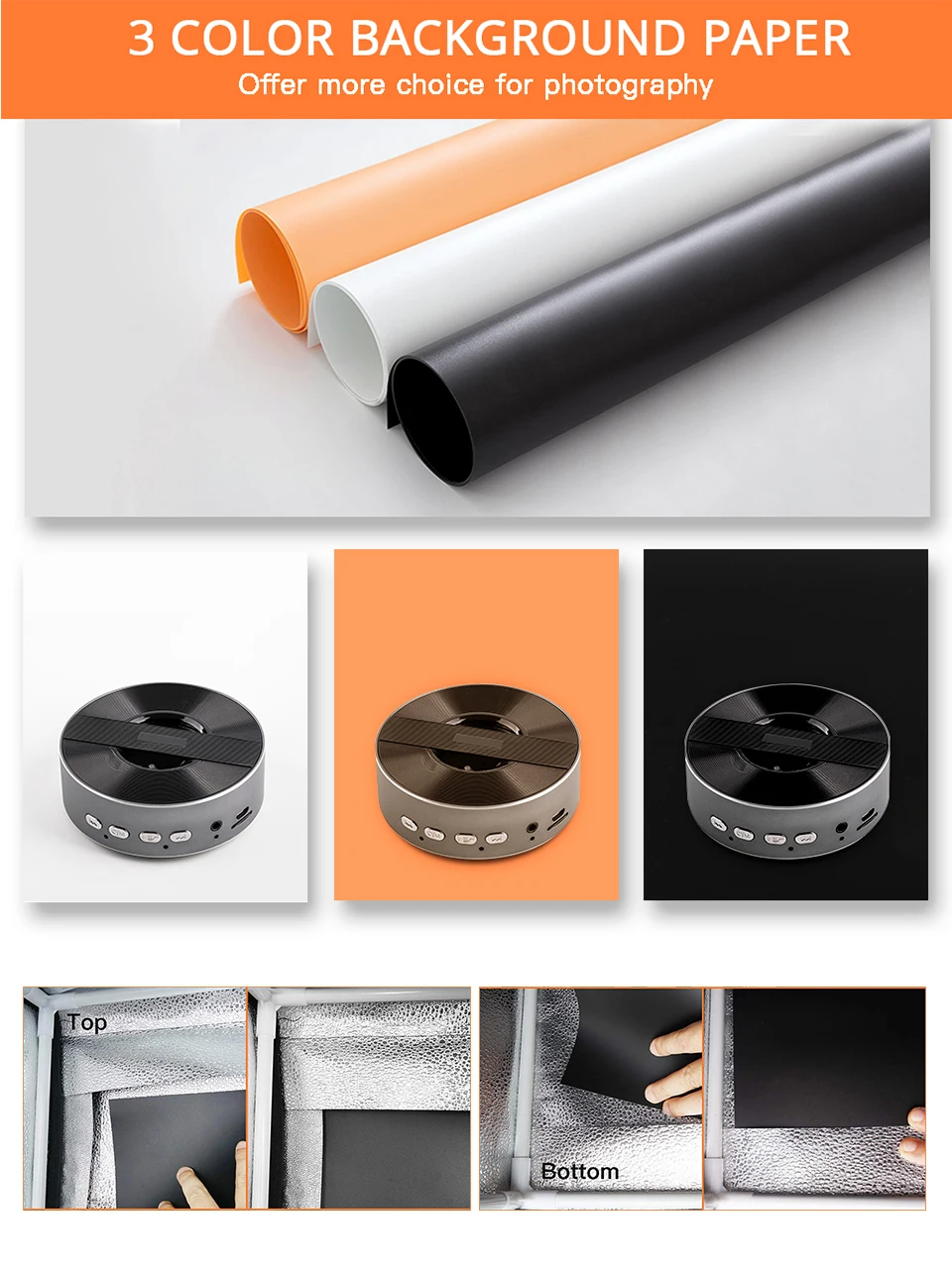 Световой короб для фотостудии Travor, 60 см, 24 дюйма, 48 Вт, 15000 лм, 3 цвета фоновой бумаги