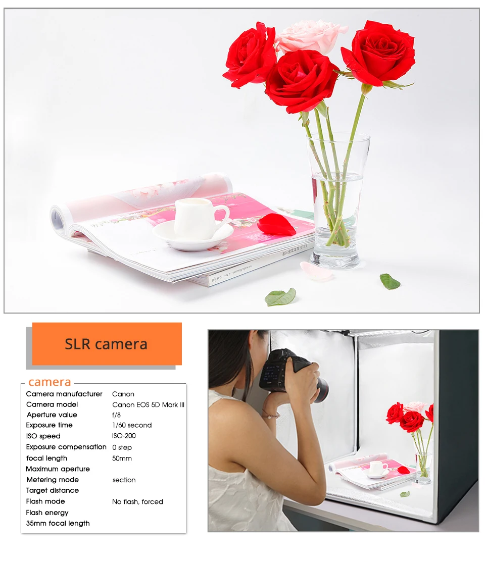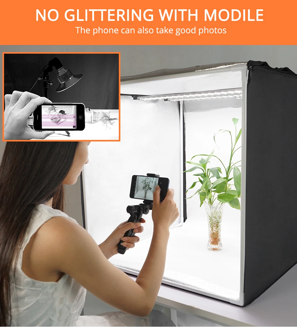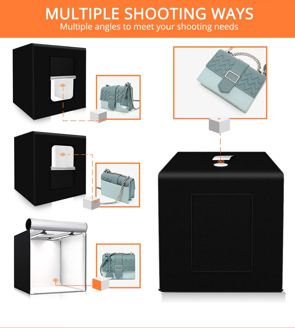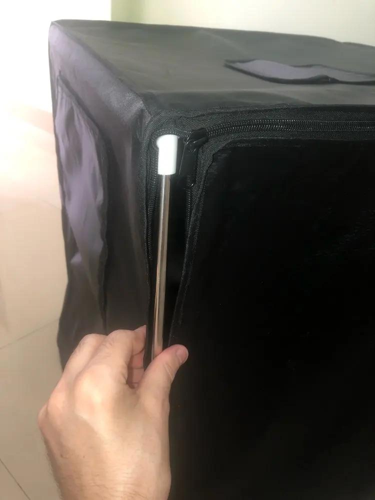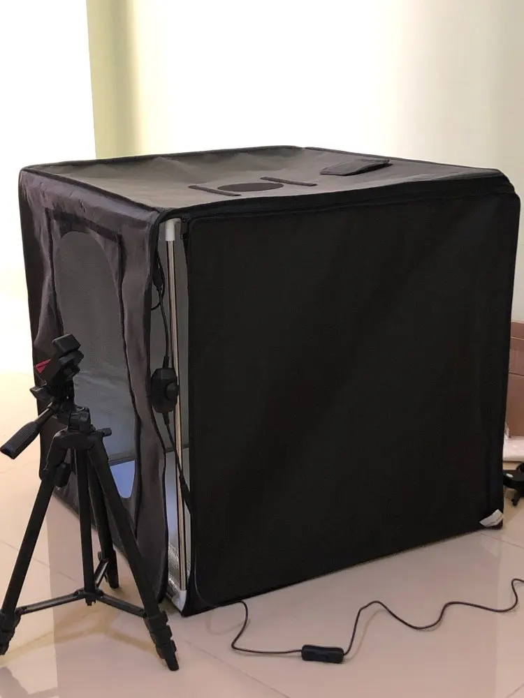 Приветствую , товар пришёл быстро потому что заказывал с платной доставкой в 1900₽ , мне достался бракованный товар , одна молния не закрывается до конца , потому что не правильно пошито, в острожном всё хорошо, свет хороший, для съемки маленьких товаров идеально .
