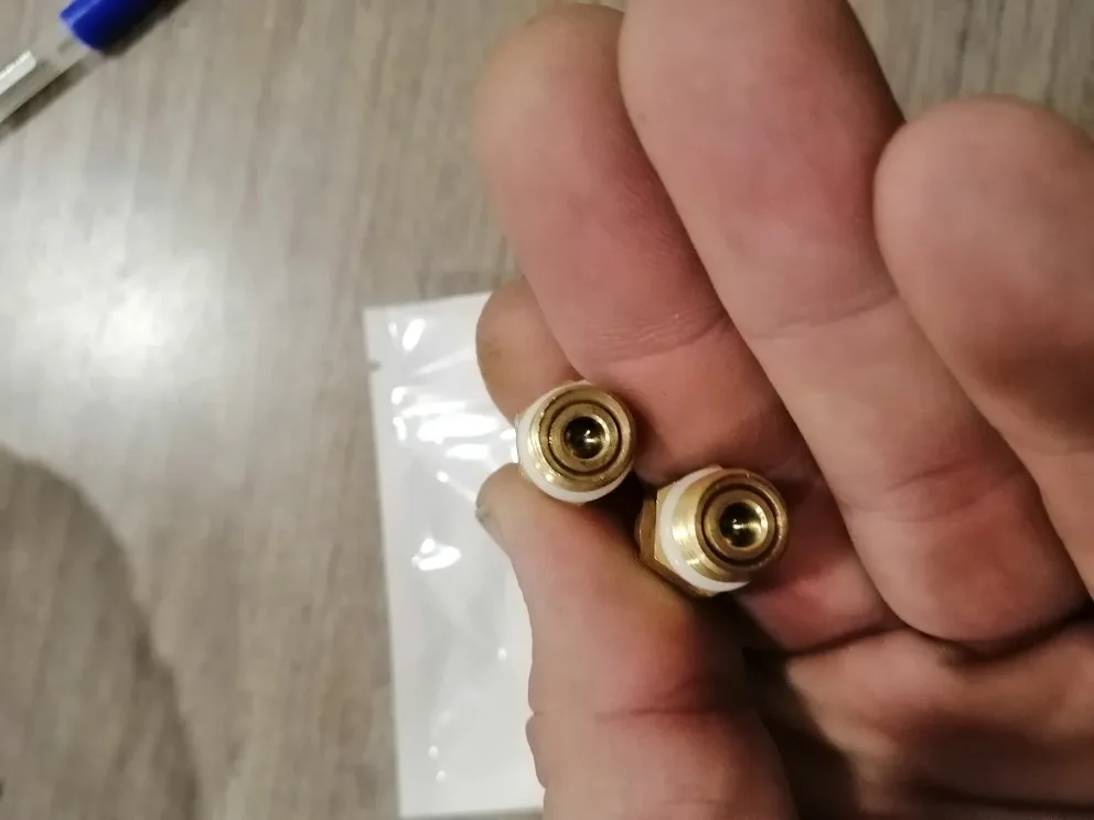 В описании не указан шаг резьбы. С моим пистолетом (М10х1,5)не совпал. Вышел из положения перерезав резьбу. Все работает. Длинная часть насадки откручивается.