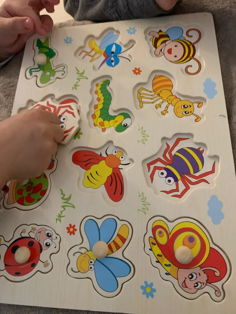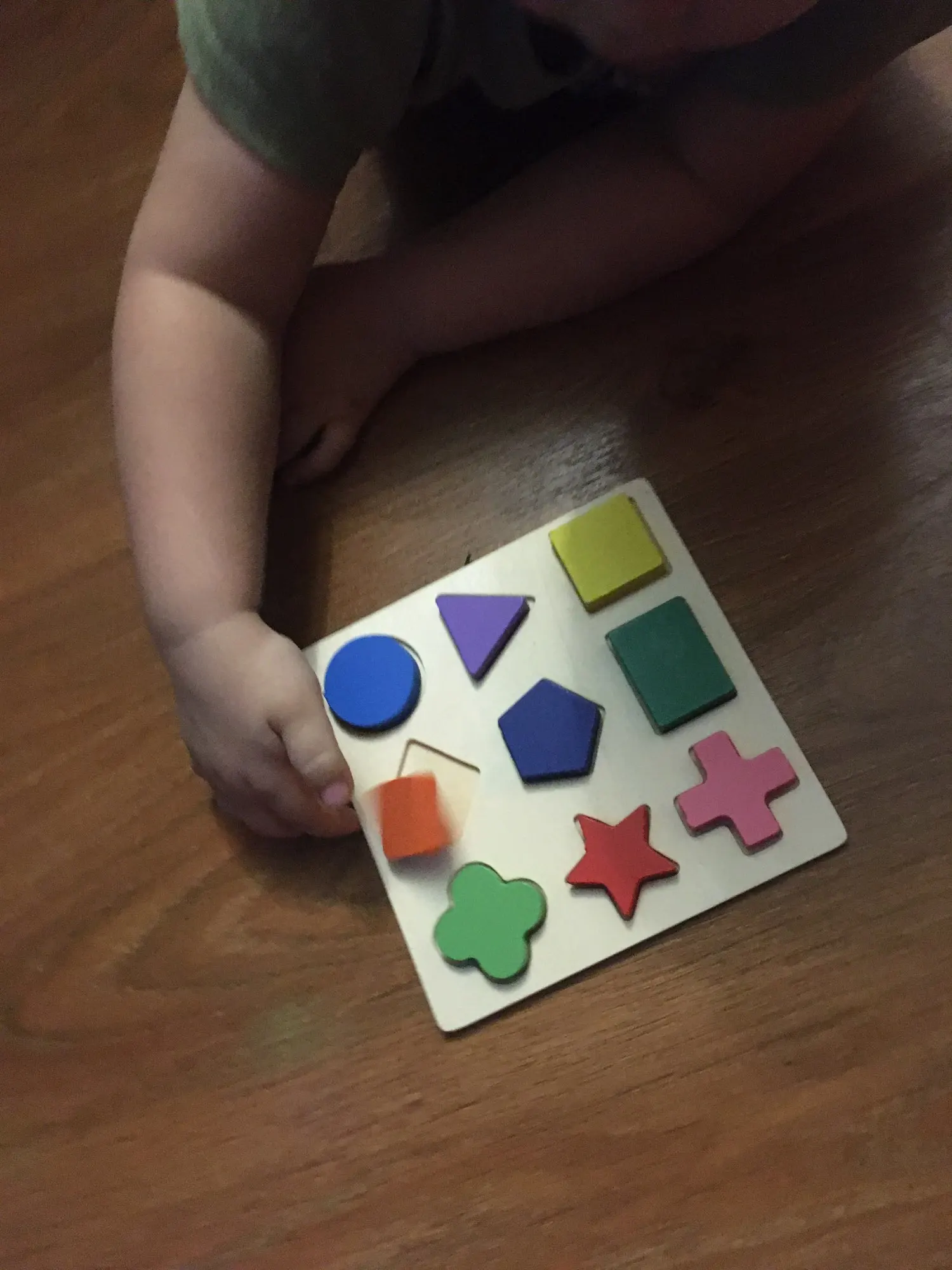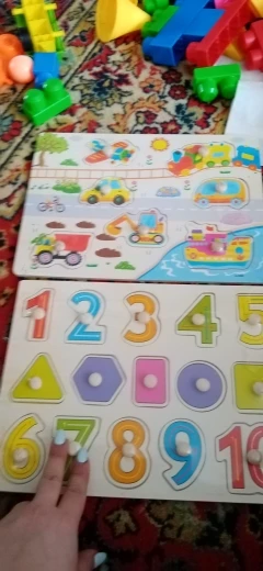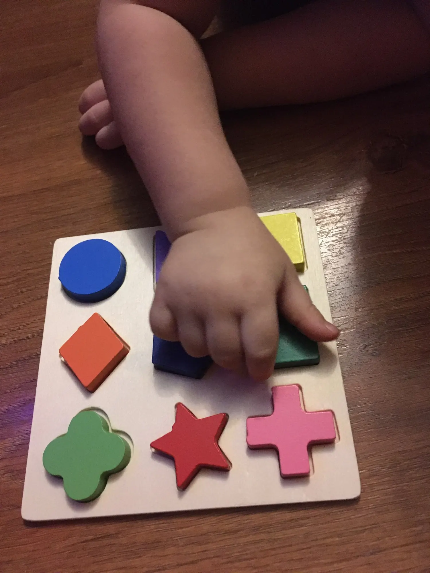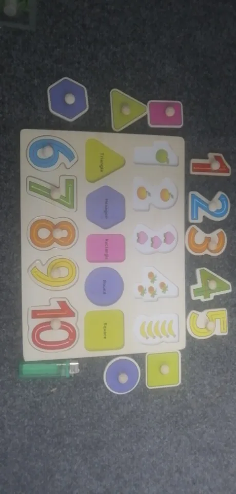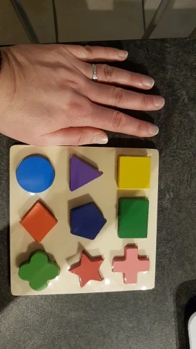 Заказывала 2 набора:один с фруктами, другой попроще для понимания-формы. Со вторым будет классно учить цвета. Ребёнку 10 месяцев, с удовольствием рассматривает, вынимает фигурки и пытается вставить обратно. Если вынуть фигурку, то на её месте есть цветная картинка. В общем, классная игрушка. Пришло меньше чем за месяц