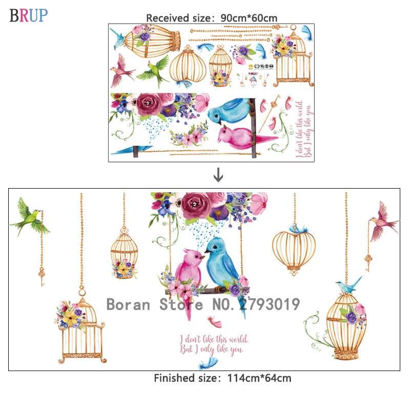 Настенные наклейки с птицами, 114*64 см, в ассортименте