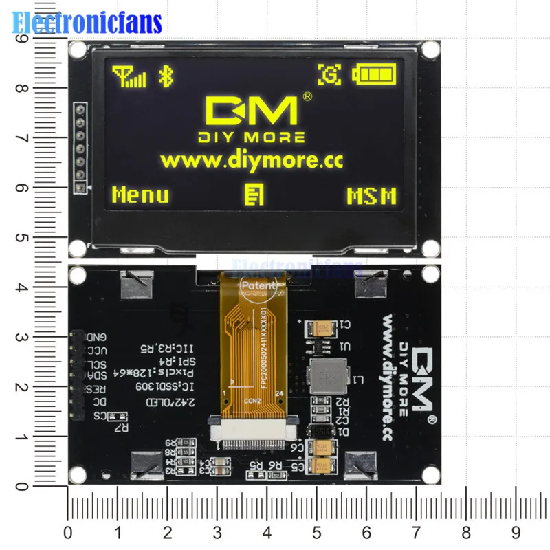 Желтый ЖК-экран 2,42 дюйма, 2,42x64, для C51, STM32, SPD0301