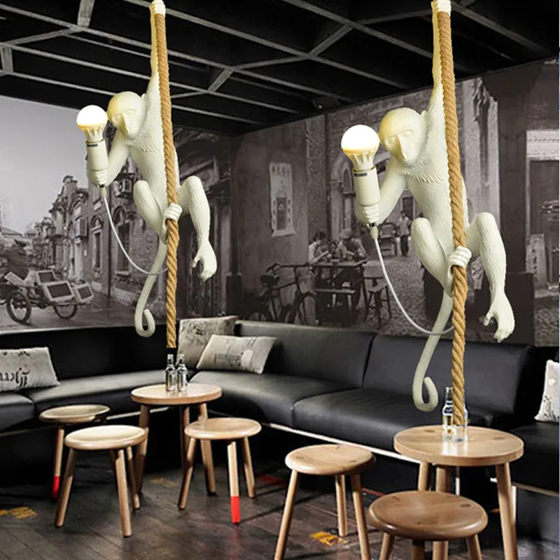 Подвесной светильник в форме обезьяны, ретро, E27, скандинавский креативный подвесной светильник для ресторана, спальни, кафе, белый