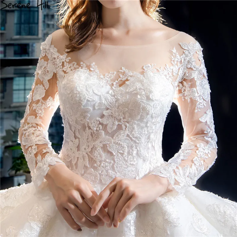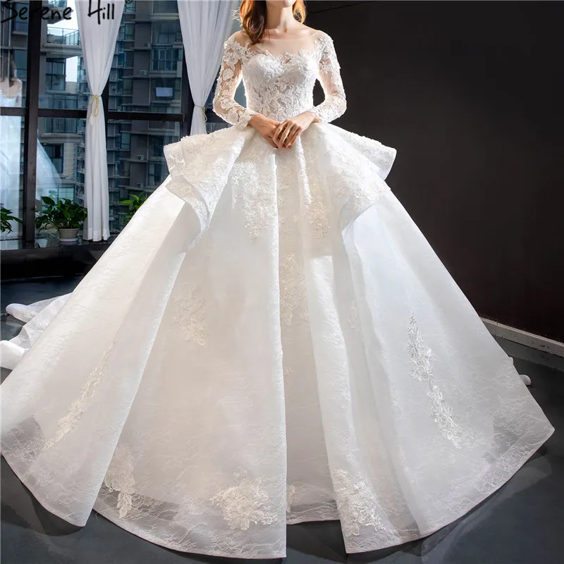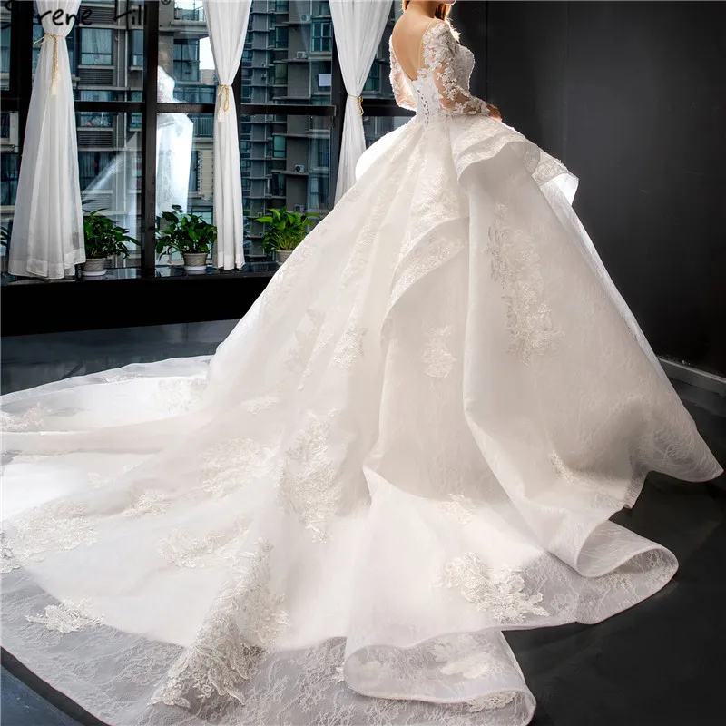 Белые сексуальные свадебные платья с длинным рукавом, ручной работы, цветы, свадебные платья с оборками, реальное фото, HM66881, на заказ, 2020