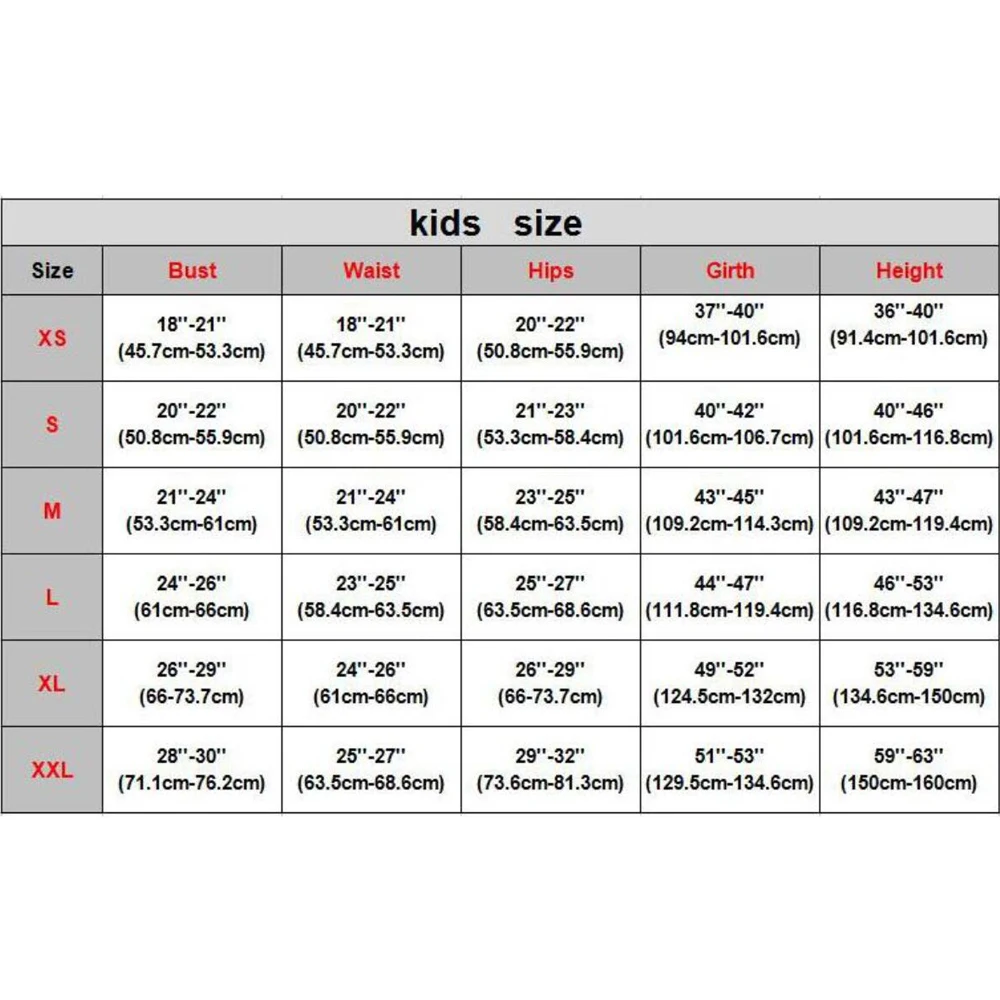 3. Детские Размеры XS,S,M,L,XL,XXL для ваших детей.