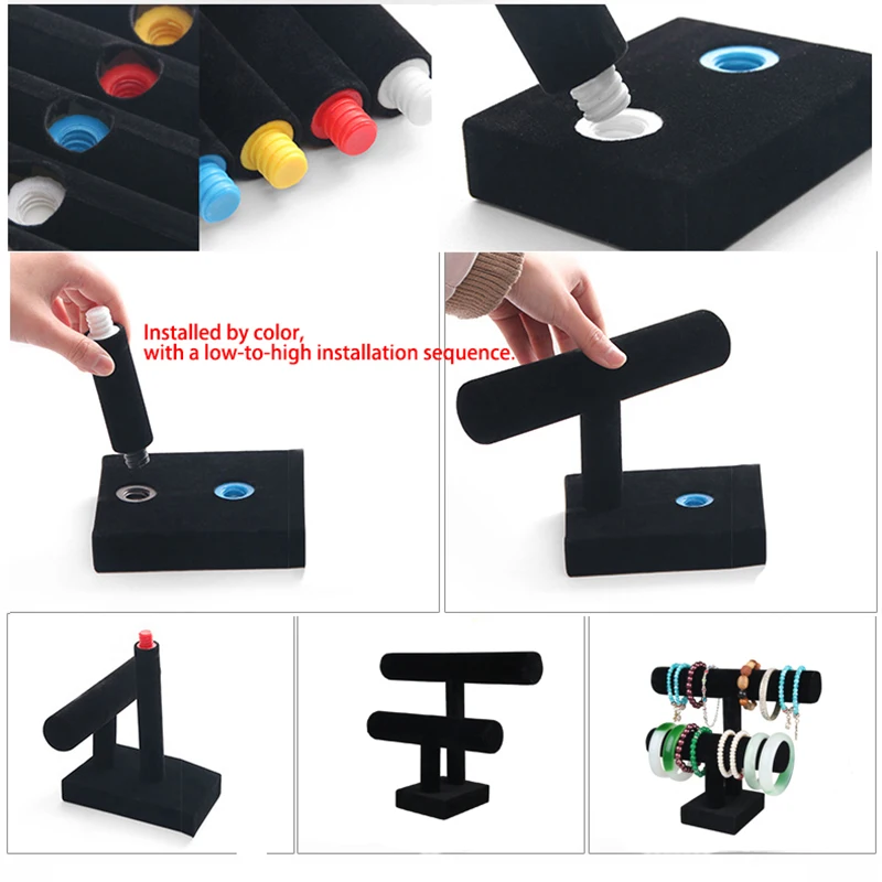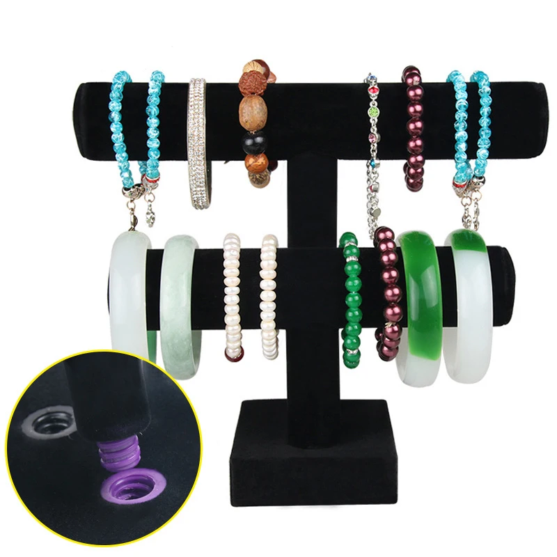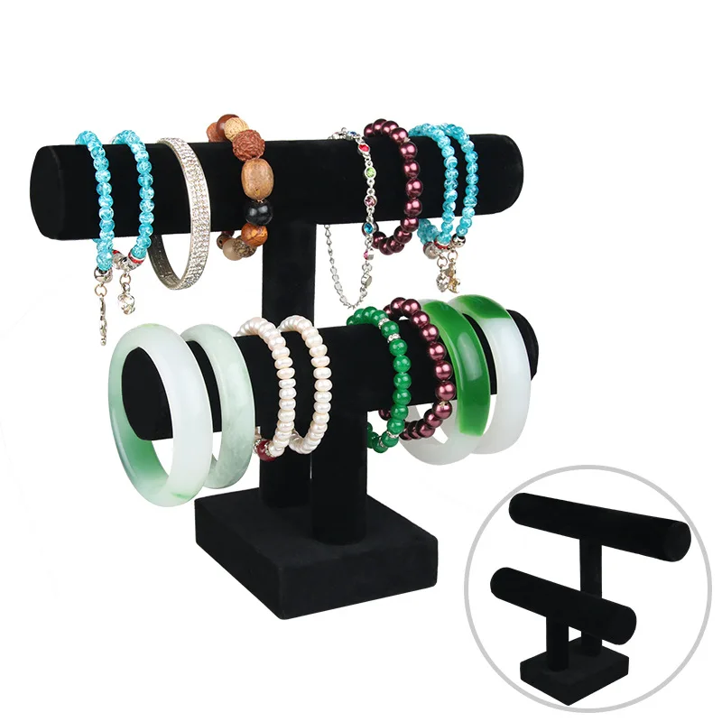2 яруса, черный бархатный съемный браслет, дисплей, цепочка для часов, T-Bar стойка, органайзер для ювелирных изделий, стенд, держатель, дисплей для ювелирных изделий