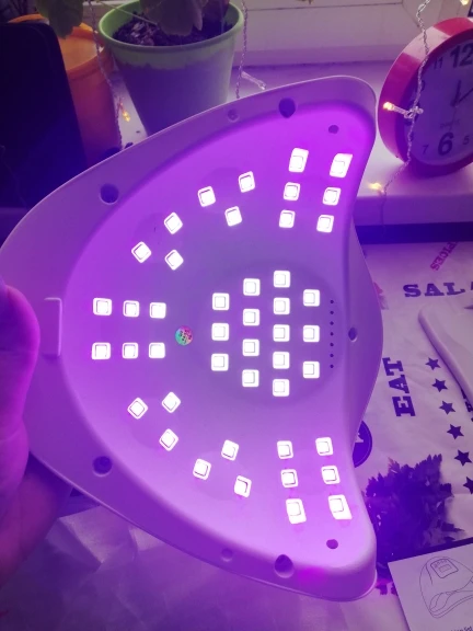 Очень хорошая лампа. Светодиоды все горят. Можно выбрать время сушки. Я сушила на 30 секундах и на минуте. Гель-лак кошачий глаз подсох хорошо. Лампа запоминает время. Например, вы выбрали 60 секунд. Кладёте руку(она сама включается). Просушили, она потухла. Пока сушите, идёт отсчёт секунд на табло. Потом убирает руку, красите и опять кладёте, и лампа автоматически включается на 60 секунд. Работает от розетки. Шнур в комплекте. Так же в комплекте инструкция, но на русском там не написано. Дно отделяется от самой лампы. Так что удобно делать педикюр. Доставка в Ростовскую область-неделя. Забирала на почте. Лампа и коробка целые. Спасибо продавцуТовар рекомендую
