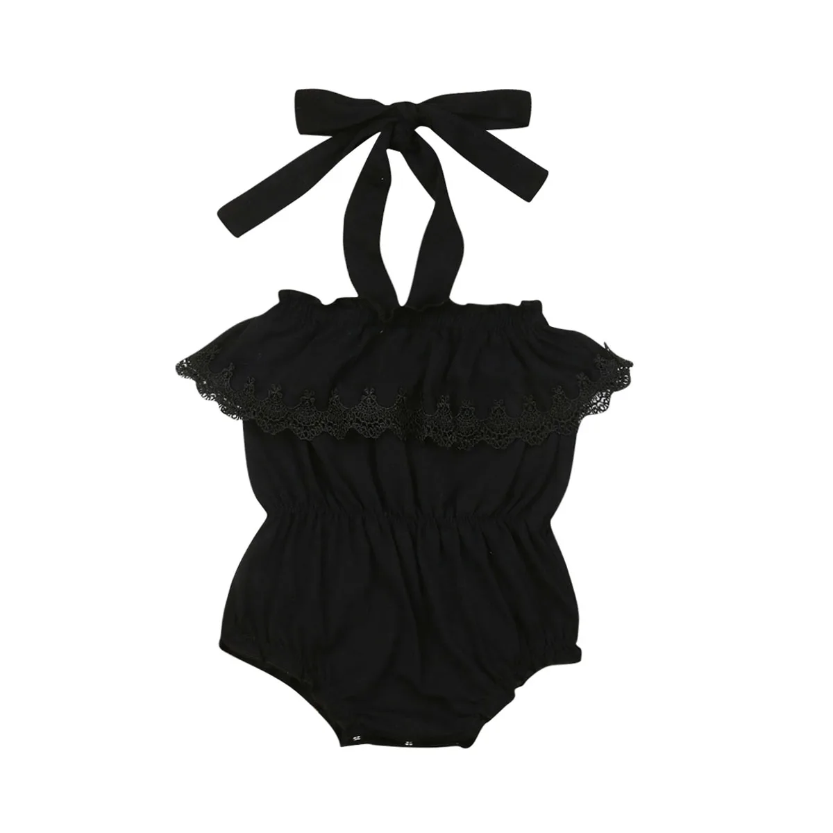 Детское Кружевное боди без рукавов, с открытыми плечами и оборками