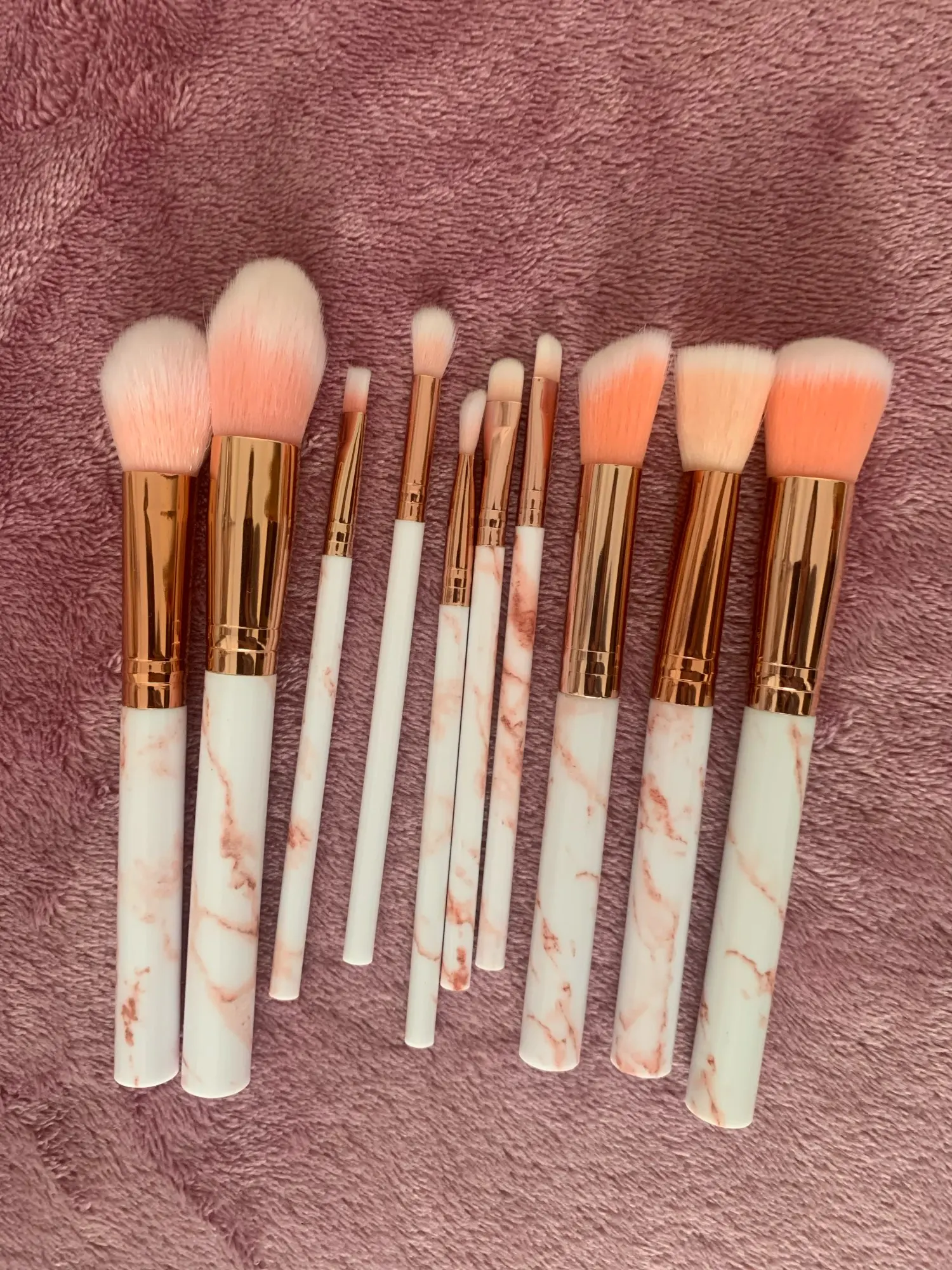 took a month to arrive to romania. they're good quality, very soft, very light plastic handles, the bristles of the brushes are very dense. only thing is that they are smaller than i expected, not the brush lenght, but the size of the bristles themselves. other than that they are very good, great for concealler application, blush, highlighter, anything