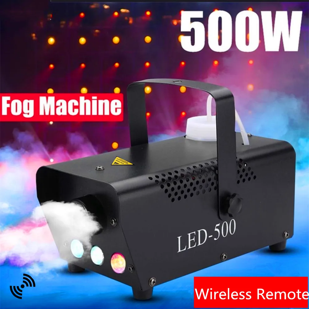Светодиодная дымовая машина 500 ВтБеспроводной удаленный эжектор тумана с дистанционным управлениемDJ-диско, свадьба, вечеринка, сценический эффект, противотуманная машина с RGB-светодиосветодиодный 3 Вт