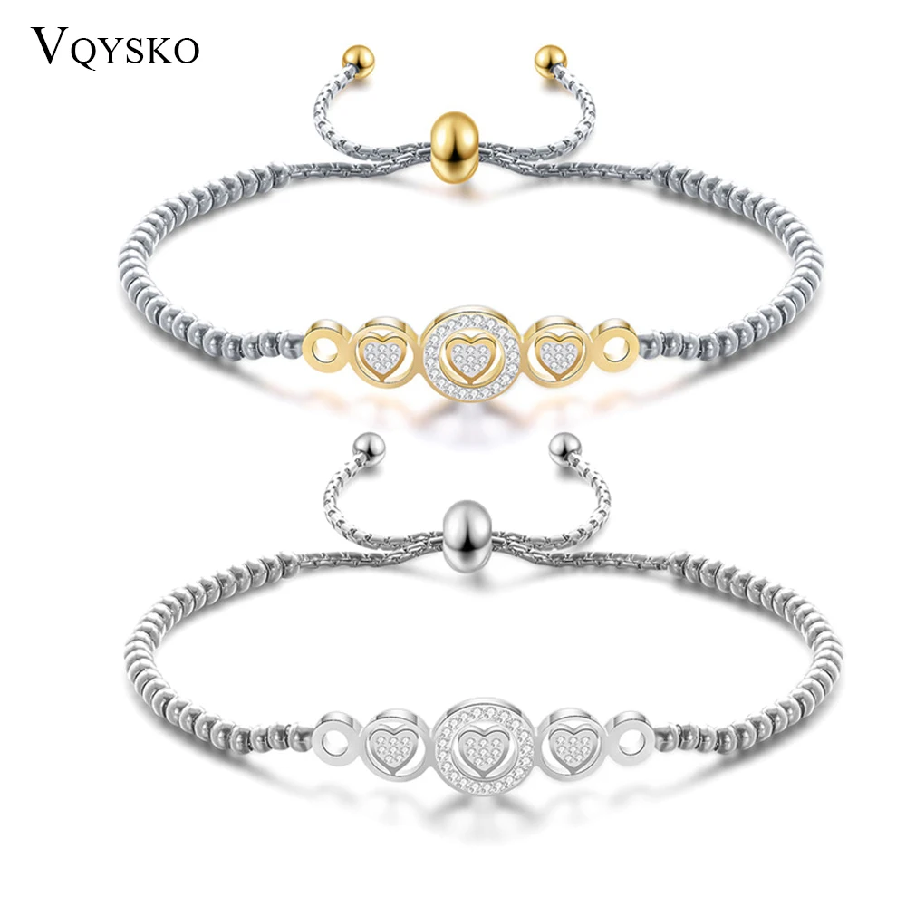 Женский браслет с бусинами из нержавеющей стали, браслет ручной работы с подвесками в форме сердца, 2021