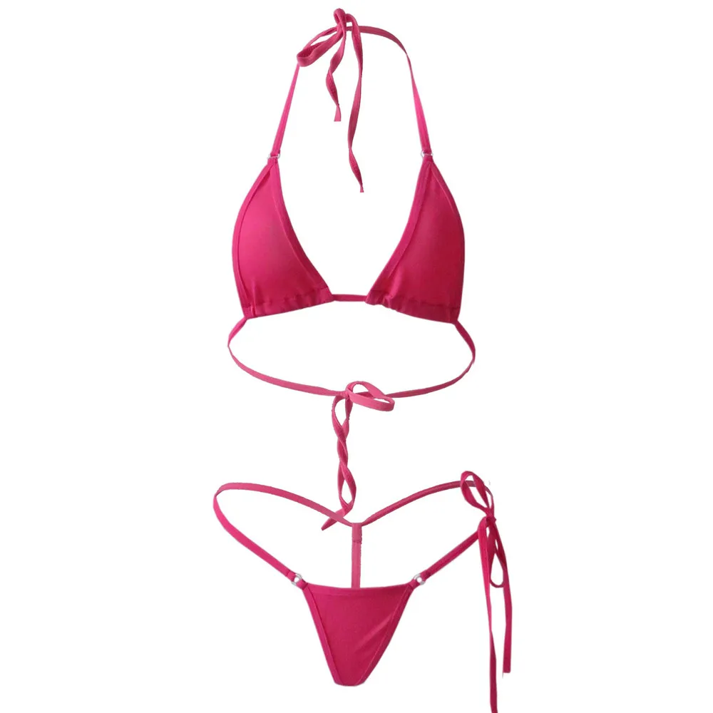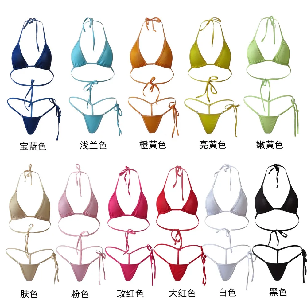 Микро-бикини, новинка 2020, сексуальные однотонные треугольные кружевные стринги, пляжные купальники для девочек, женский купальник, бикини, бикини, монокини