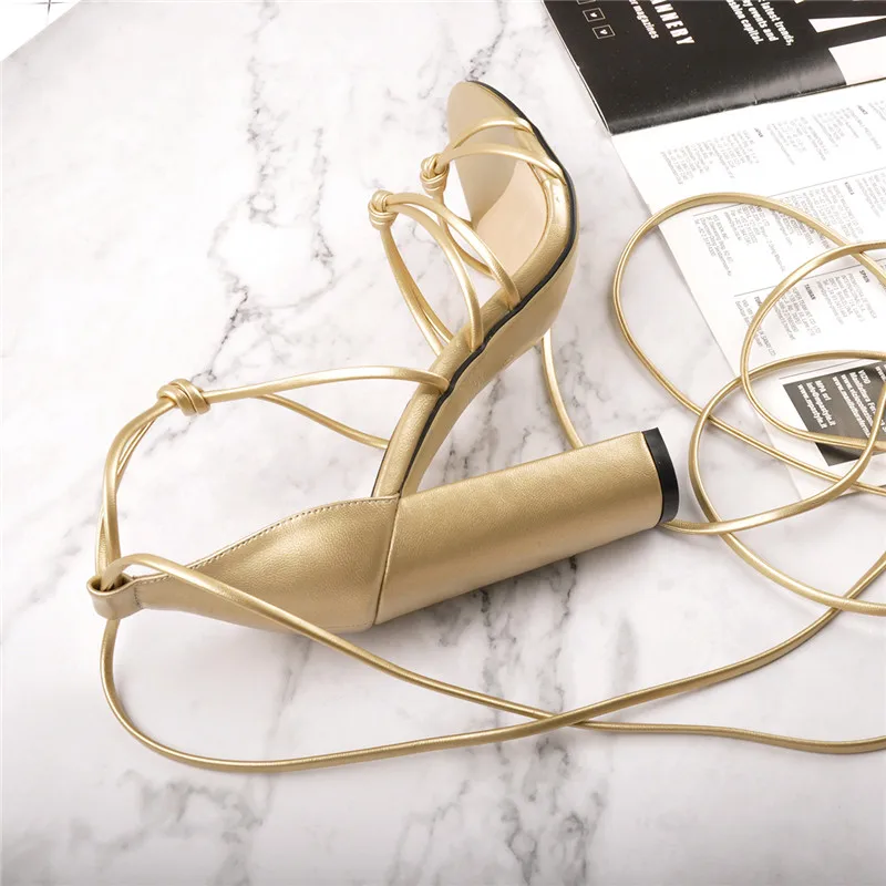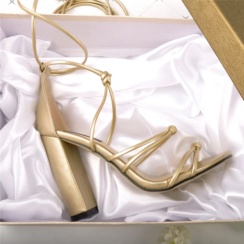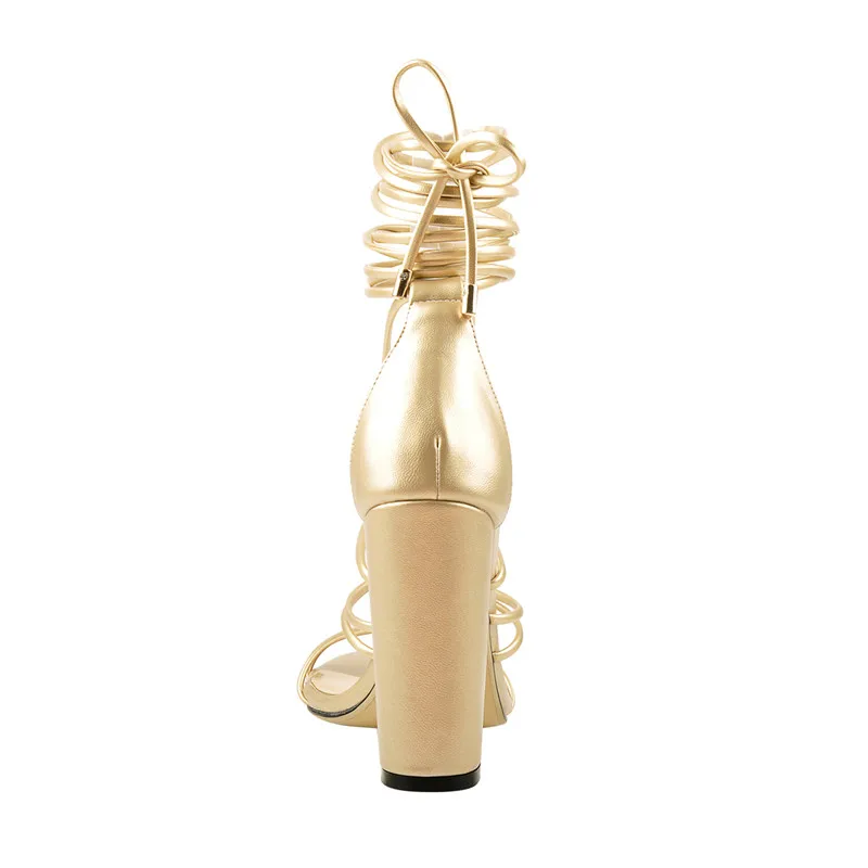 Onlymakerженские сандалии-гладиаторы золотистого цвета на шнуровке; босоножки на высоком массивном каблуке с открытым носком и ремешком на щиколотке; повседневная обувь с бантом