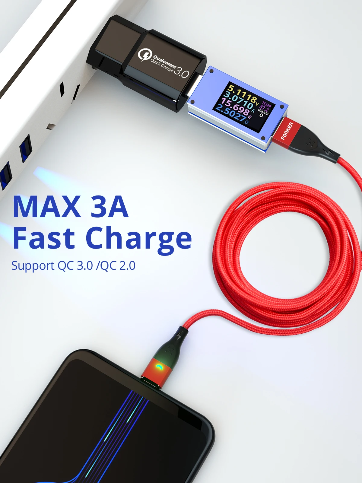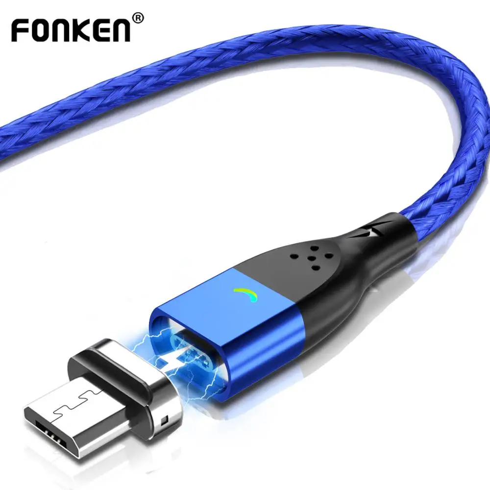 Магнитный кабель FONKEN Micro USB, 1 м, 2 м, 3 А, для быстрой зарядки и передачи данных, для Xiaomi 7, 8, Samsung S10, планшетов