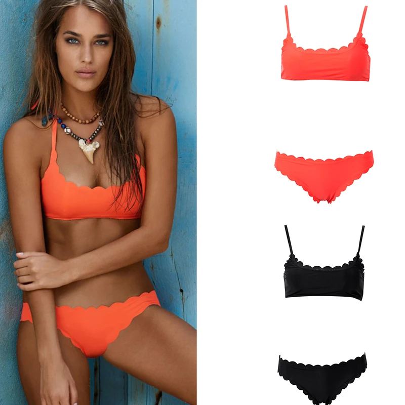 Женский сексуальный бюстгальтер с чашками пуш-ап, бандажный комплект бикини, купальник, треугольный купальник, купальный комплект бикини, черный, оранжевый