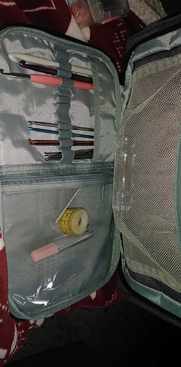 Существует большая проблема: нет возможности хранить обычные иглы для вязания: сумка недостаточно длинная. Жаль, потому что вдруг я не знаю, как положить весь свой материал в одну сумку. Поэтому сумка теряет немного полезности. Быстрая доставка.