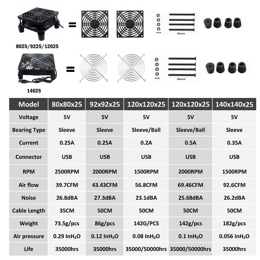 2 шт. Gdstime DC 5V USB Power PC Cooler TV Box беспроводное охлаждение 120 мм роутер вентилятор 80 мм 90 мм 140 мм вентилятор с винтами Prot роутер вентилятор