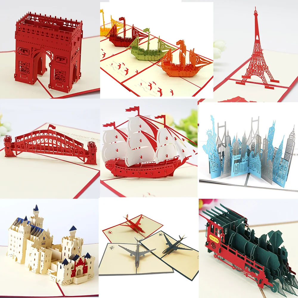 3D всплывающие подарочные карты на день рождения, аттракционы мира, миниатюрные карты, деловые приглашения карт, подарки мальчику, туристическая открытка