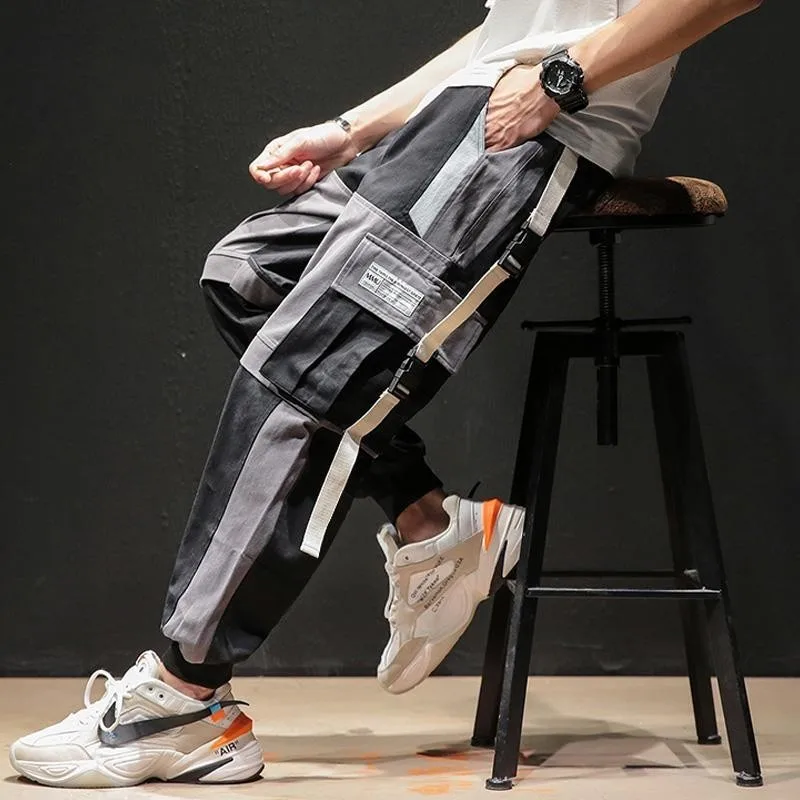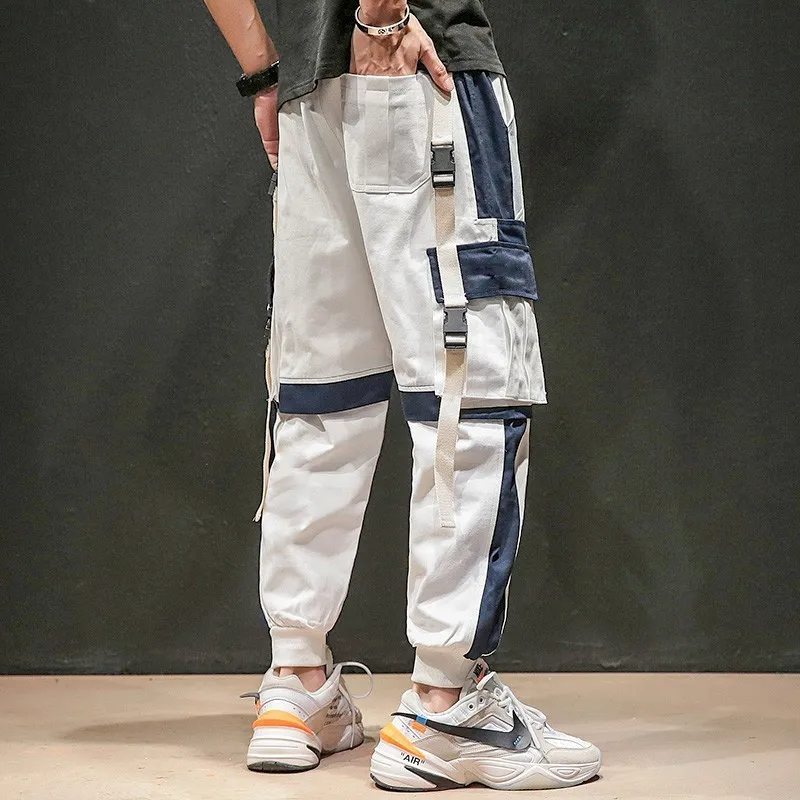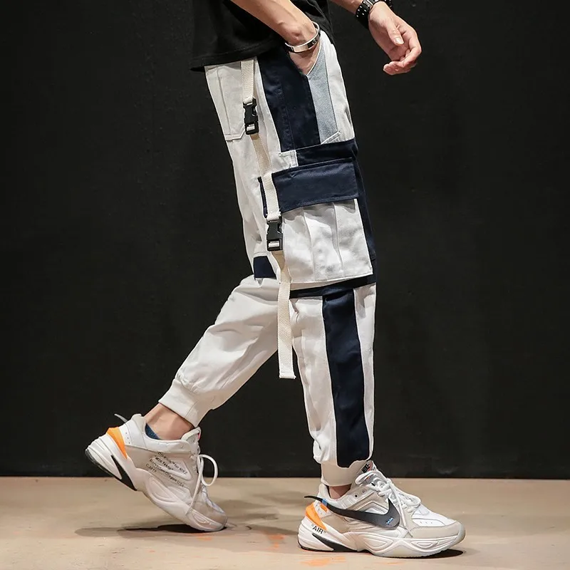 Брюки-карго мужские хлопковые, с эластичной резинкой на талии, уличная одежда длиной до бедер ленты, 2019