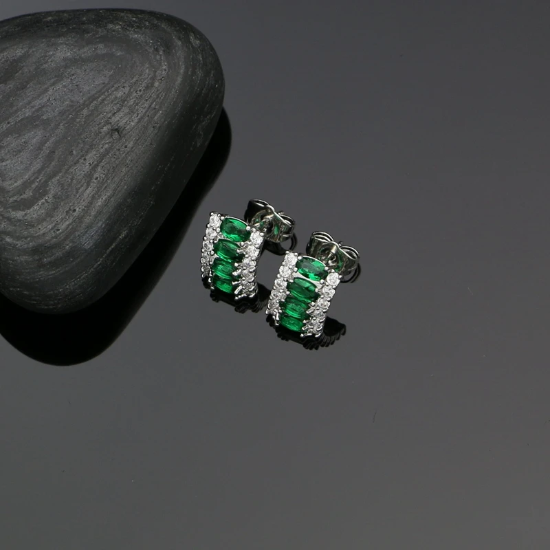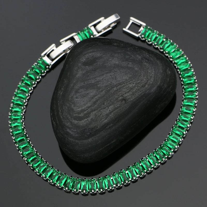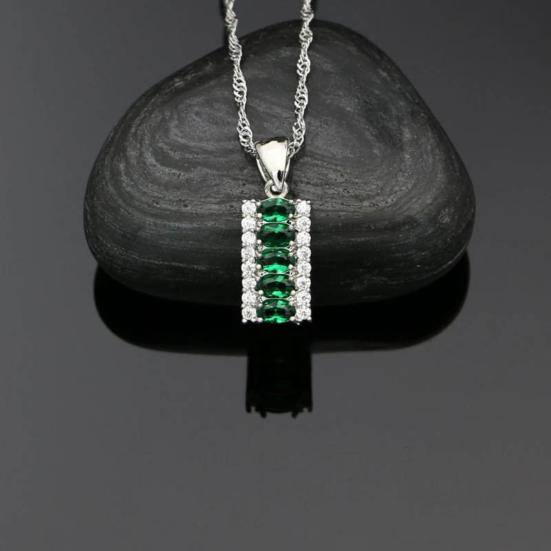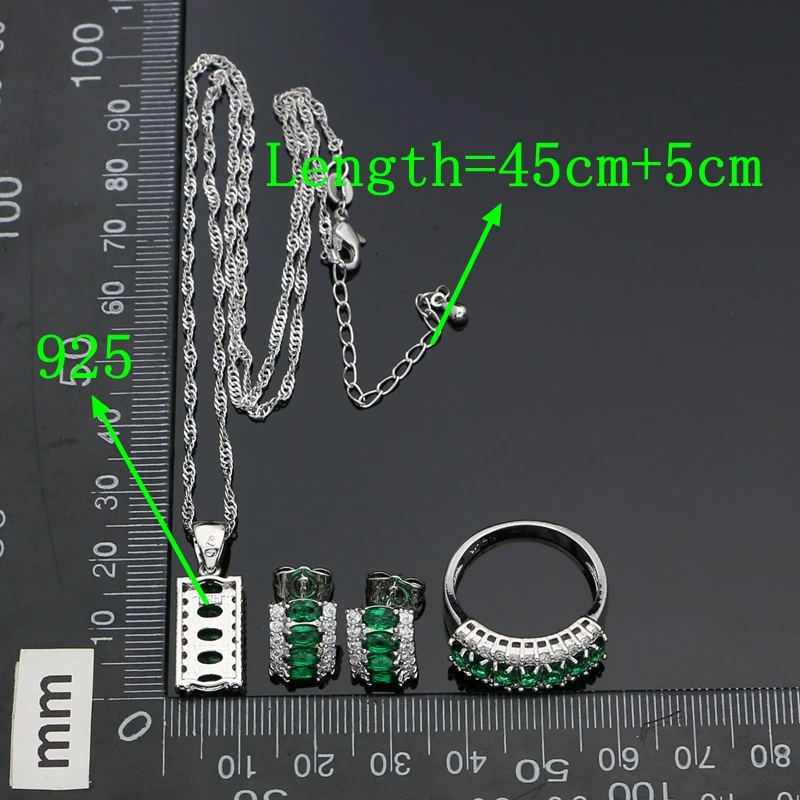 Наборы женских украшений из серебра 925 пробы, с зеленым кубическим цирконием, с белым кристаллом, серьги-гвоздики, подвеска, кольцо, браслет, ожерелье
