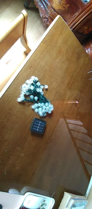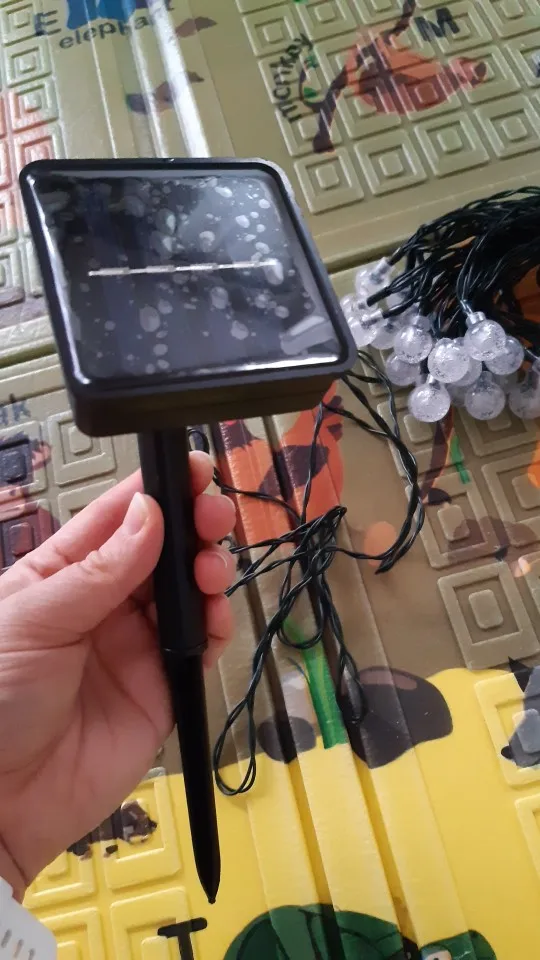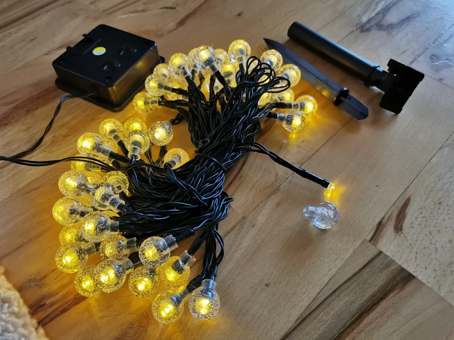 Очень красиво светится, хоть и маленькие шарики. Круто, что заряжается от солнечной батарейки.