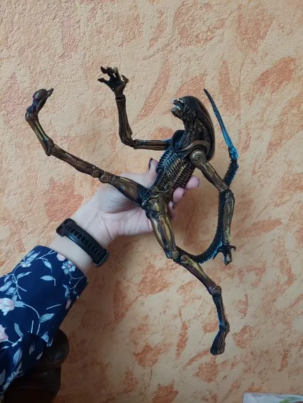 Чужой просто выше всяких похвал принимает совершенно любую позу, все двигается и крутится хорошо, не отваливается, детализация на высшем уровне все безупречно, размер соответствует, и почему в моем детстве не было таких игрушек, брал для изготовления подставки под нож, но нужен второй буду ещё заказывать, прилетел мухой 5 дней до Москвы , Рекорд почти , через пятерочку, все соответствует, продавца однозначно рекомендую!)Как сделаю подставку дополню отзыв!)