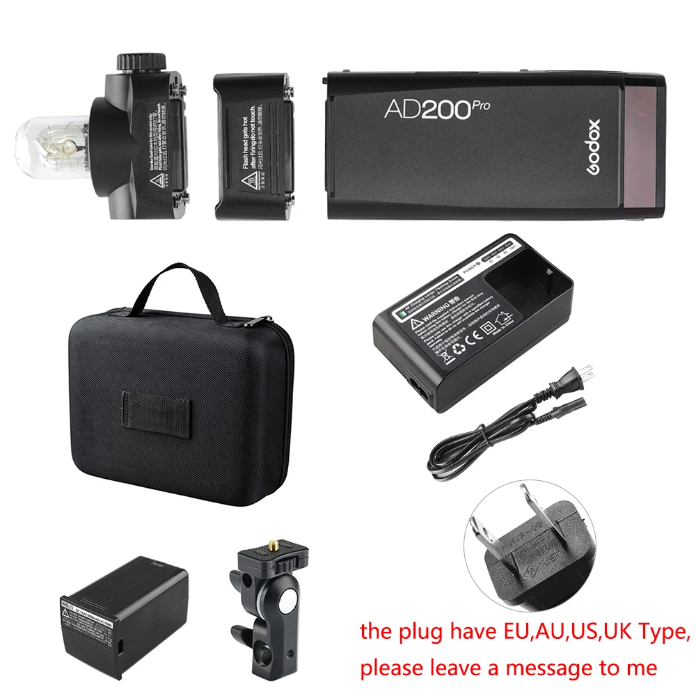 Godox AD200 Pro AD200Pro 200Ws 2,4 G Вспышка стробоскоп , наружная вспышка для Sony Nikon Canon, голая лампа Вспышка Fresnel