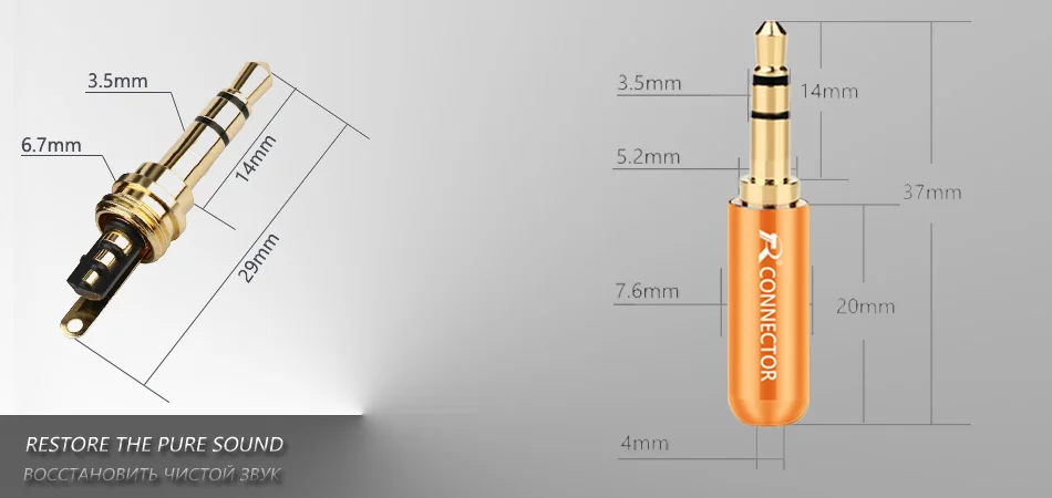 Покрытие: Медь 24K позолоченный штекер