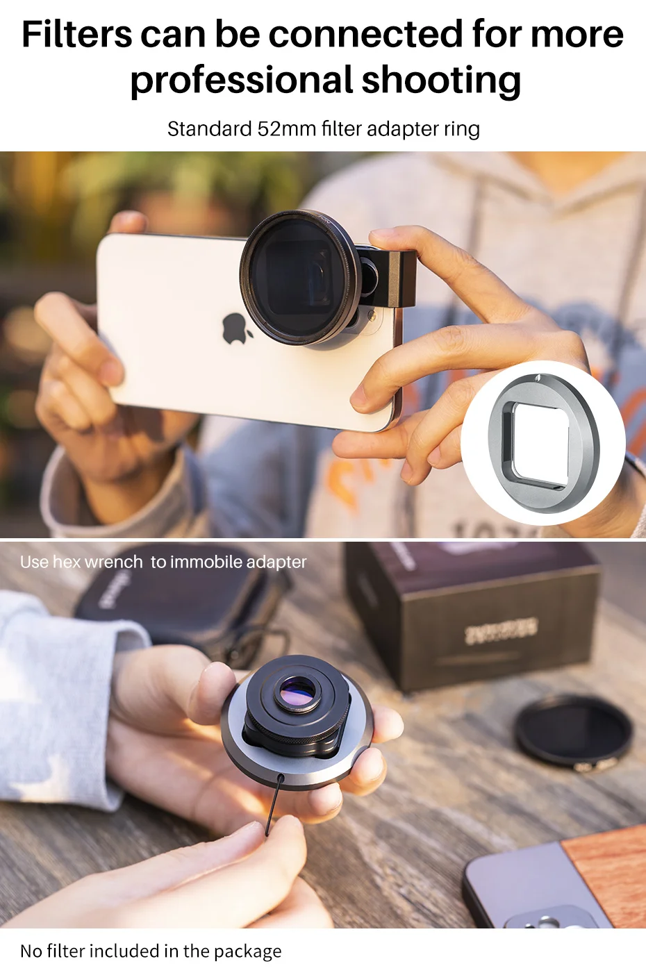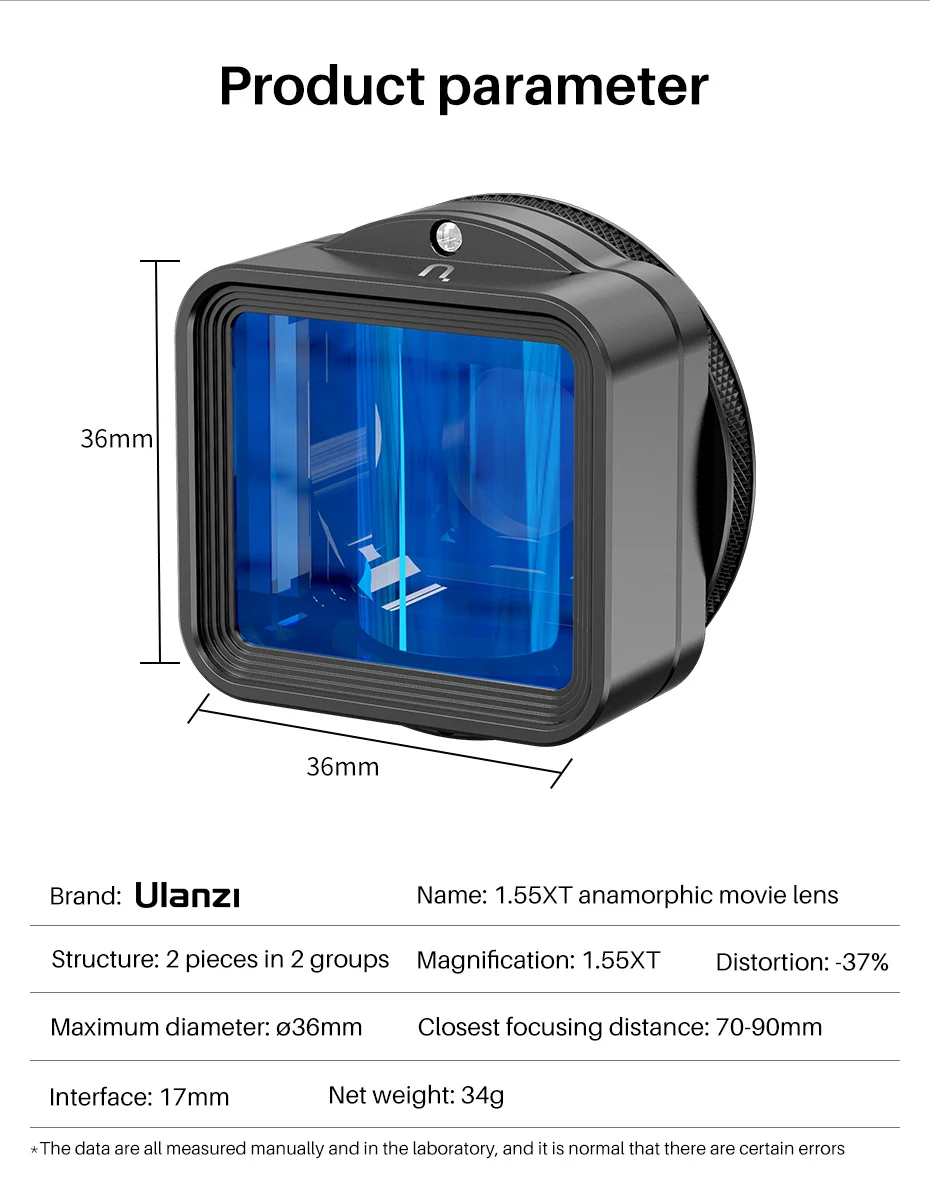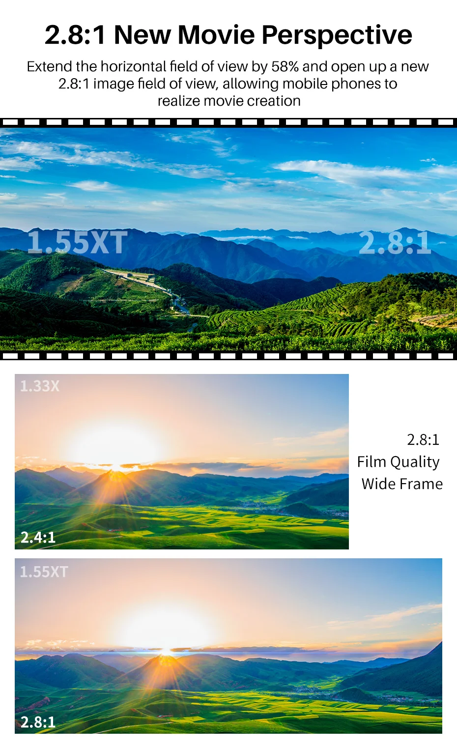 Анаморфный объектив Ulanzi для iPhone 13 12 Pro Max X 1,55x, широкоэкранный широкоформатный Movie Videomaker Filmmaker