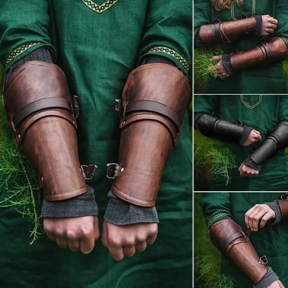 Мужской средневековый браслет, 1 пара, черныйкоричневый, ПУ, широкие из искусственной кожи, бронежилет, манжета в стиле стимпанк, повязка на руку