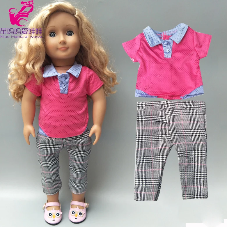 Одежда для кукол 17 дюймов, рубашка, клетчатые штаны, одежда для американских кукол 18 дюймов, повседневный комплект, Одежда для кукол