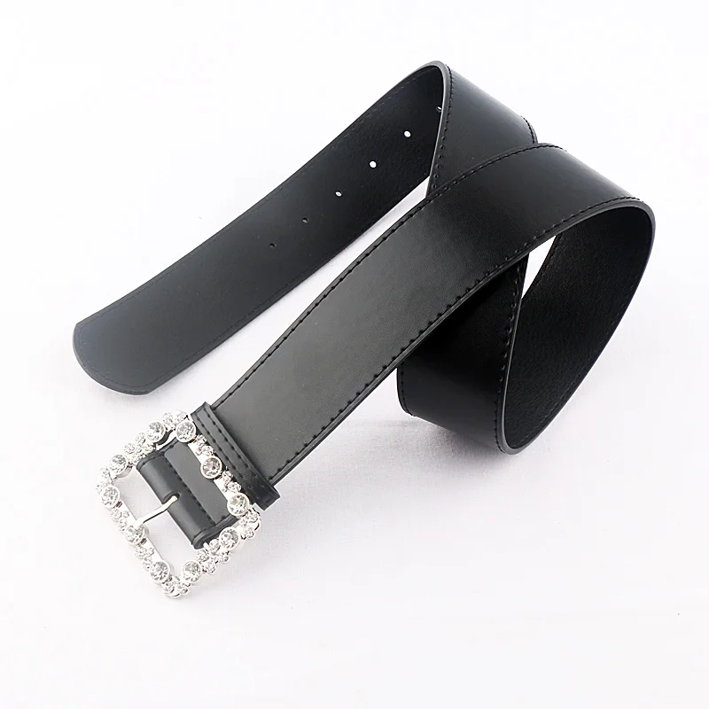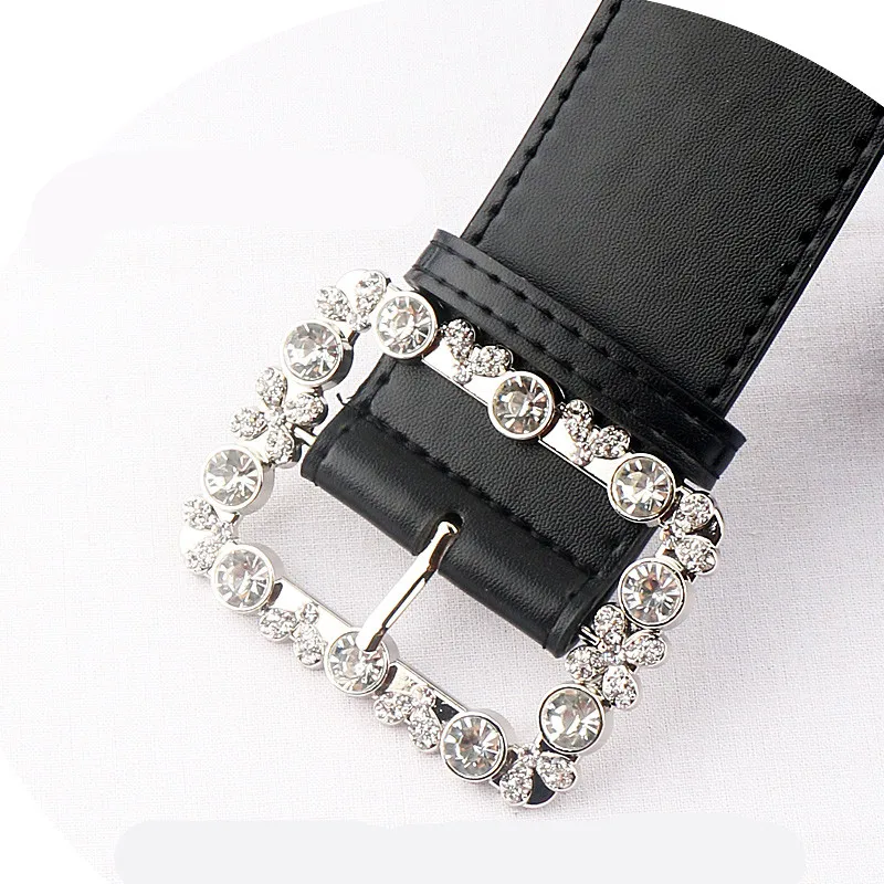 Женские ремни для платьев, популярный серебристый металлический Прозрачный Стразы, пряжка с кристаллами, однотонный ремень из искусственной кожи, летние женские аксессуары