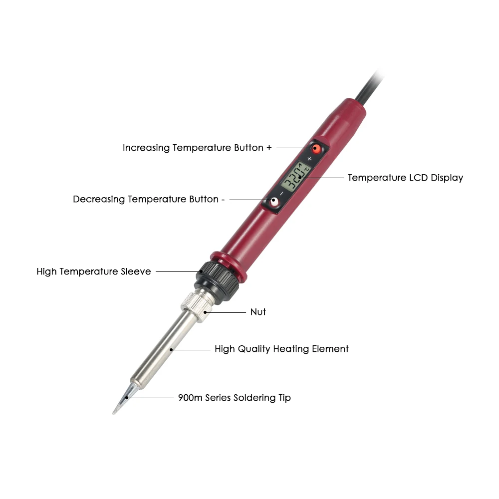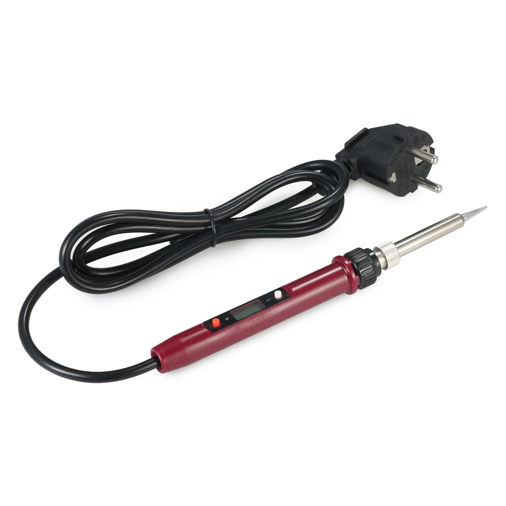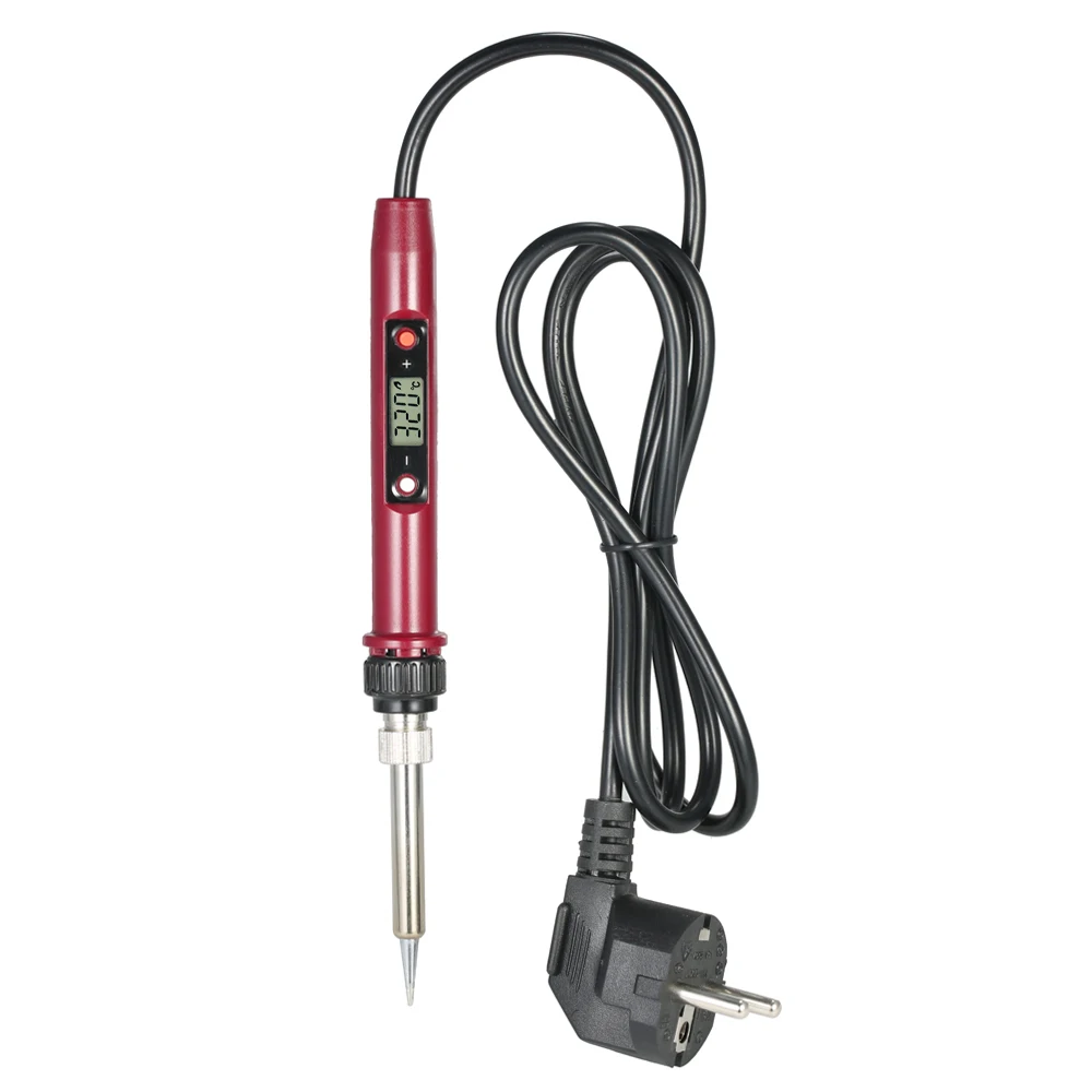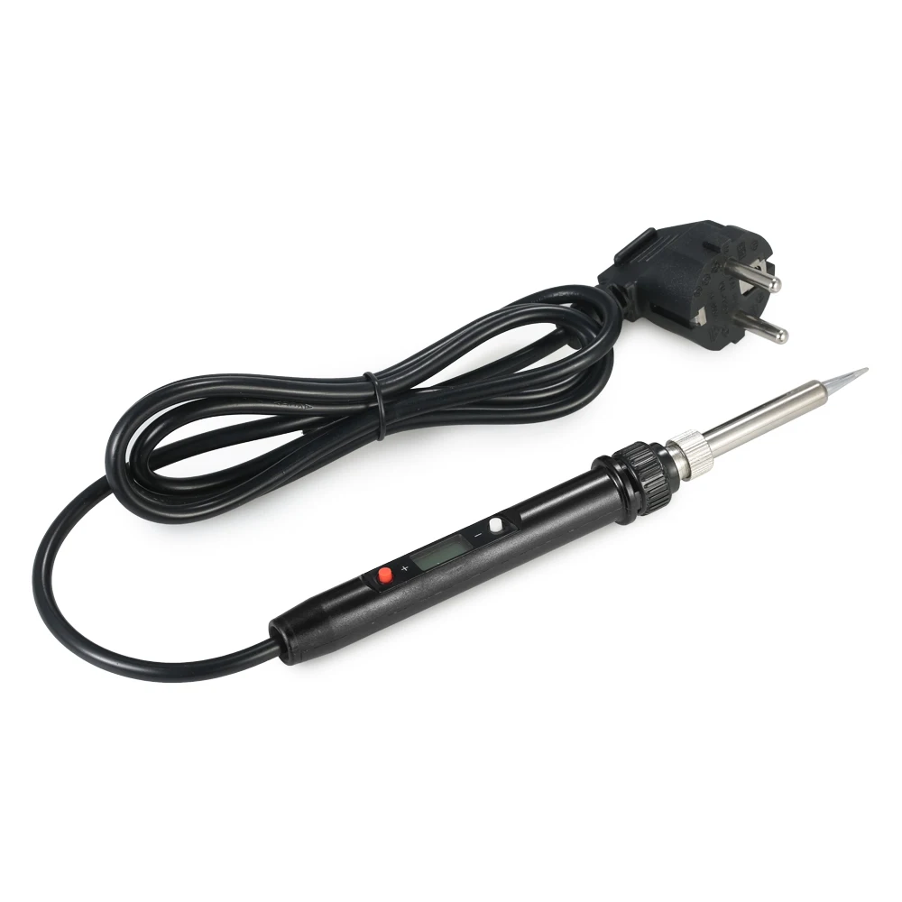 Комплект электрического паяльника поставляется с ЖК-дисплеем и наконечником нагревателя T13. Он имеет функцию настройки температуры, которую вы можете настроить на подходящую температуру для различных проектов. Это отличный инструмент для электроники, компьютерного оборудования, ремонта часов и других ремесленных проектов. Особенности:Быстро нагревается: с быстрым нагревом и быстрым восстановлением тепла.Диапазон температур: 180 ~ 480 ° для использования с постоянной температурой.Регулируемая температура: Установите желаемое значение для удовлетворения ваших потребностей в пайке.Новый дизайн: новейший дизайн ручки для рассеивания тепла, комфортные ощущения рук для длительного использования, патент на хвостовую ручку, дизайн прессования более безопасен для припоя.ЖК-дисплей: цифровой ЖК-дисплей для четкого отображения температуры.Конструкция штепсельного наконечника: Простота установки и замены наконечников, экономия времени и эффективность.Безопасная и более стабильная производительность: монтажная плата двухсторонняя позолоченная.Легкий и портативный размер: вы можете начать паять в любом месте в любое время, не ощущая усталости в течение длительного периода эксплуатации.Длительный срок службы с высоким качеством: теплоизолированная и Нескользящая силиконовая ручка обеспечивает комфортную и безопасную работу. Примечание:При включении питания не прикасайтесь к металлической части паяльного наконечника. Пожалуйста, выключите питание во время отдыха между использованием или готовой пайки. Характеристики:Тип вилки: штепсельная вилка европейского стандартаНапряжение: AC220-240VМощность: 80 ВтЦвет: черный/красный (на выбор)Материал: высокотемпературный пластик + нержавеющая сталь + силиконДисплей: ЖК-дисплейДиапазон температур: 180 ~ 480 °Стабильность температуры: ± 10 °Тип нагрева: внутреннее ОтоплениеПаяльная насадка: серия 900MПровод Длина: 1,4 m / 55.12inРазмер паяльника: прибл. 20*2*2 см/7,87*0,79 * 0.79inВес паяльника: прибл. 136 г/4,79 унцийРазмер посылка: прибл. 26*8*5,2 см/10,24*3,15 * 2.05inВес посылка: прибл. 177 г/6,24 унций Посылка:1 * Электрический паяльник