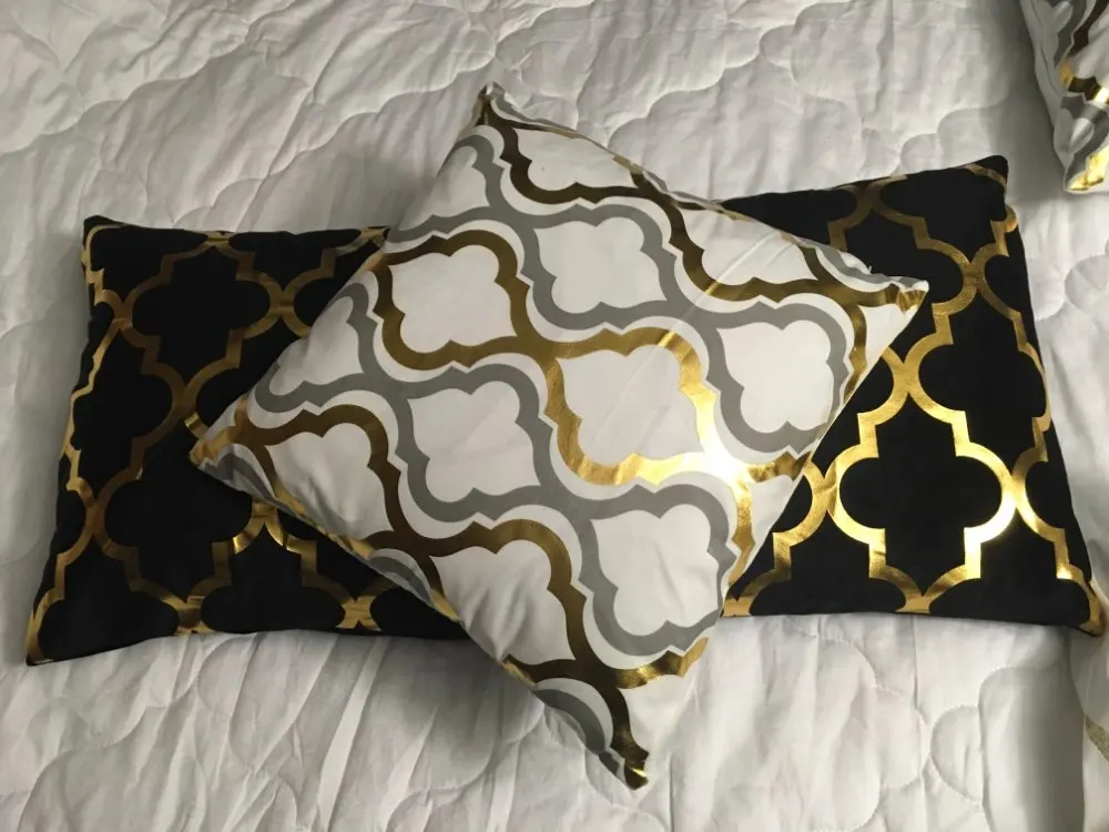 Наволочка для подушки с геометрическим рисунком, черно-белая, декоративная наволочка для диванной подушки, Модный золотой чехол дизайнерская Подушка x 45