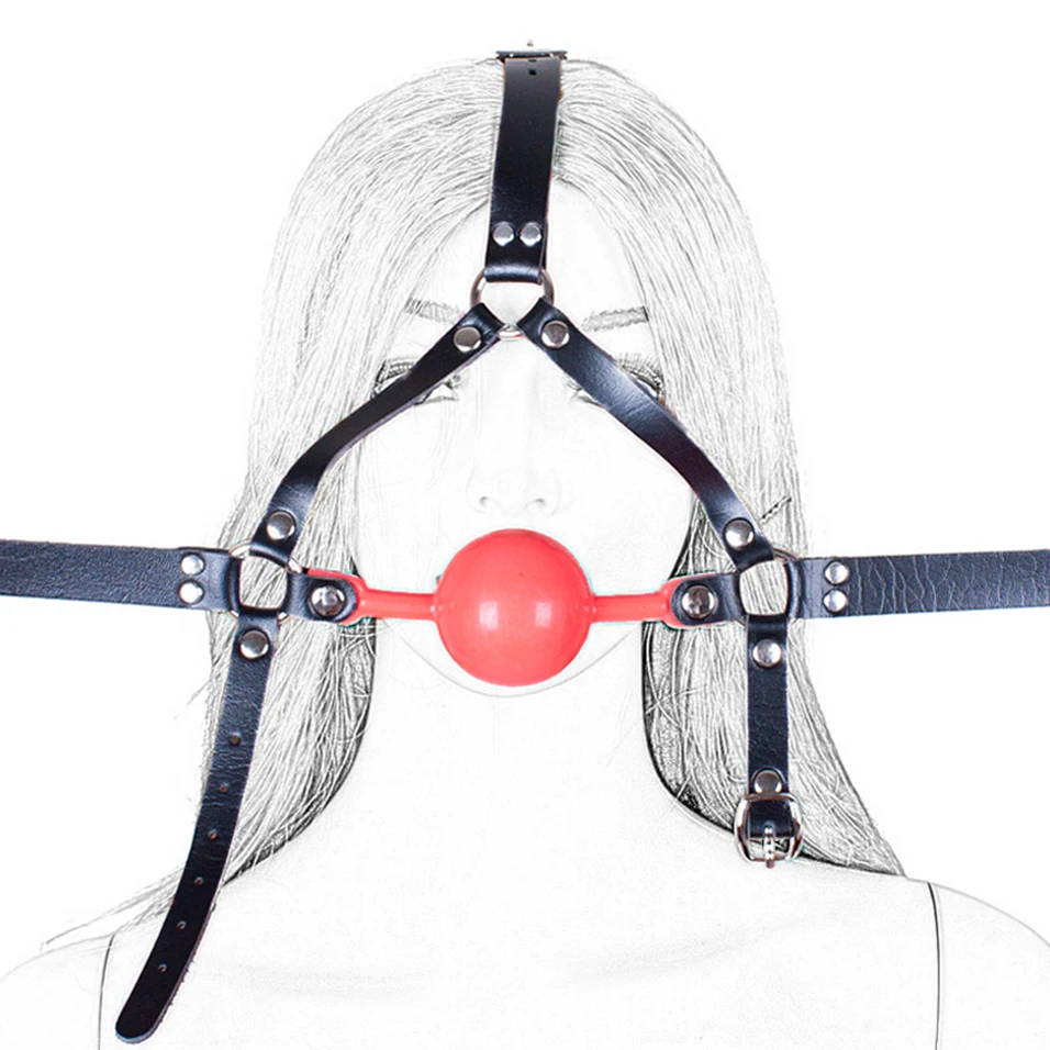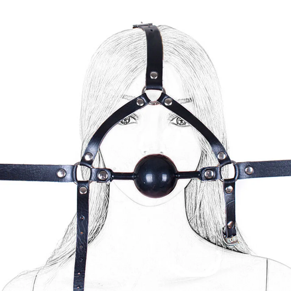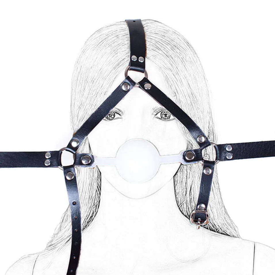 Силиконовая маска-кляп camaTech 48 мм с большим шариком, кожаная портупея для головы, бондаж с открытым ртом, ограничители Для кляпа, секс-игрушки для фиксации орального рта