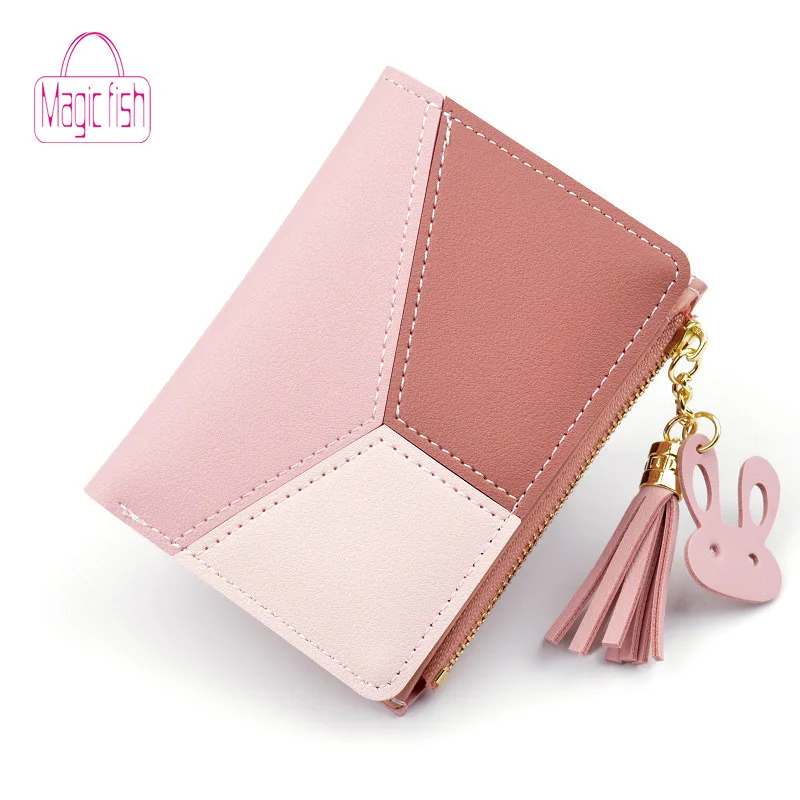 Женский кошелек Magic Fish, кошелек на молнии, кошелек в стиле пэчворк, модный короткий кошелек со вставками, модный кошелек для монет, кожаный держатель для карт