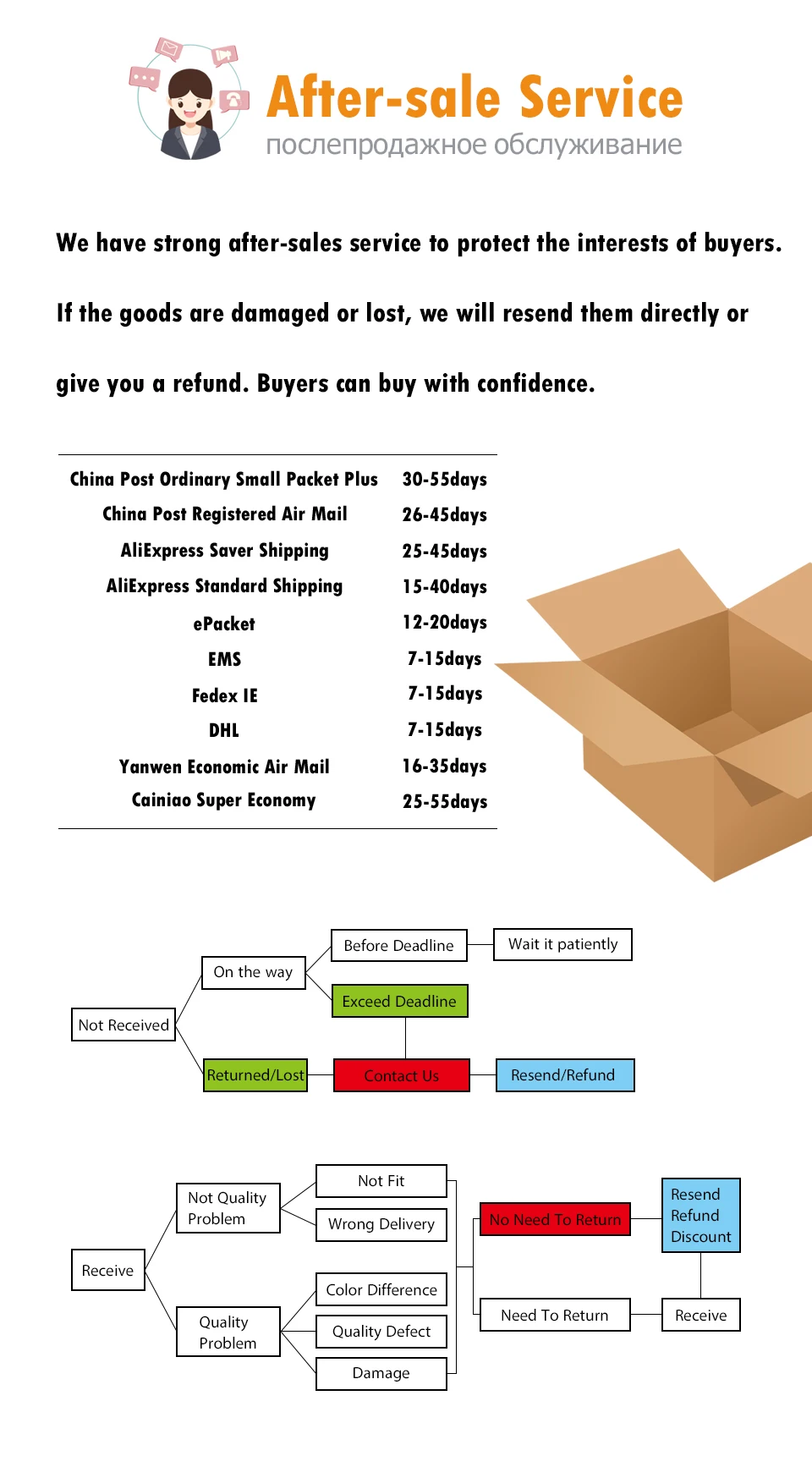 B. Если вы не удовлетворены нашими товарами, пожалуйста, свяжитесь с нами, прежде чем оставить нейтральный (3 звезды) или отрицательный (1–2 звезды) отзыв. Мы гарантируем, что решим любую вашу проблему.