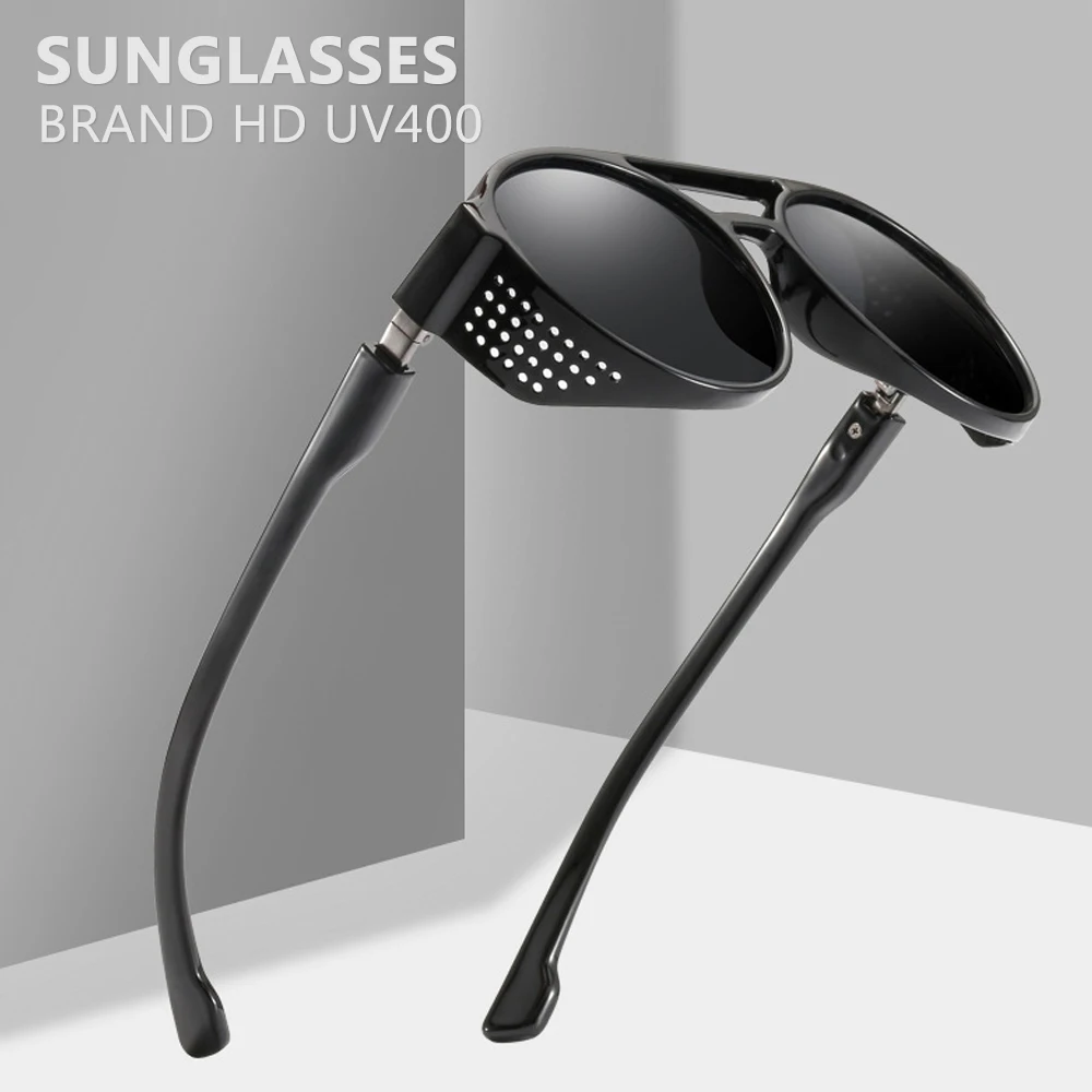 Солнцезащитные очки мужские круглые в стиле стимпанк, ретро, хиппи, винтажные, трендовые, с защитой от ультрафиолета, 2019