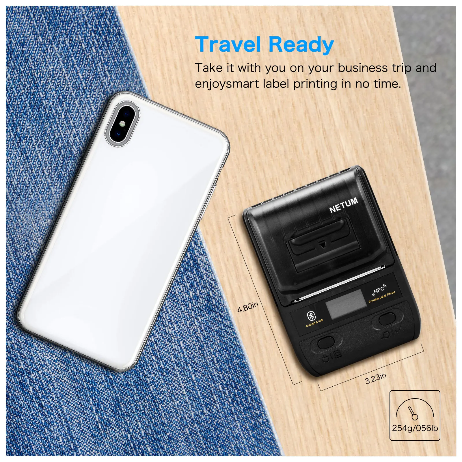 Портативный термопринтер для этикеток NETUM с аккумулятором, подходит для одежды, ювелирных изделий, розничной торговли, рассылки, штрих-кодов и многого другого, совместим с системой Android и iOS
