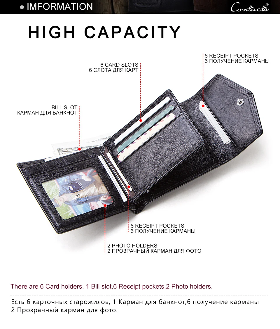 Короткий кошелек Contact's из 100% натуральной кожи для мужчин, тройной складной бумажник, качественный держатель для мелочи, кредитница, маленькая сумочка для денег, подарок для мужчин