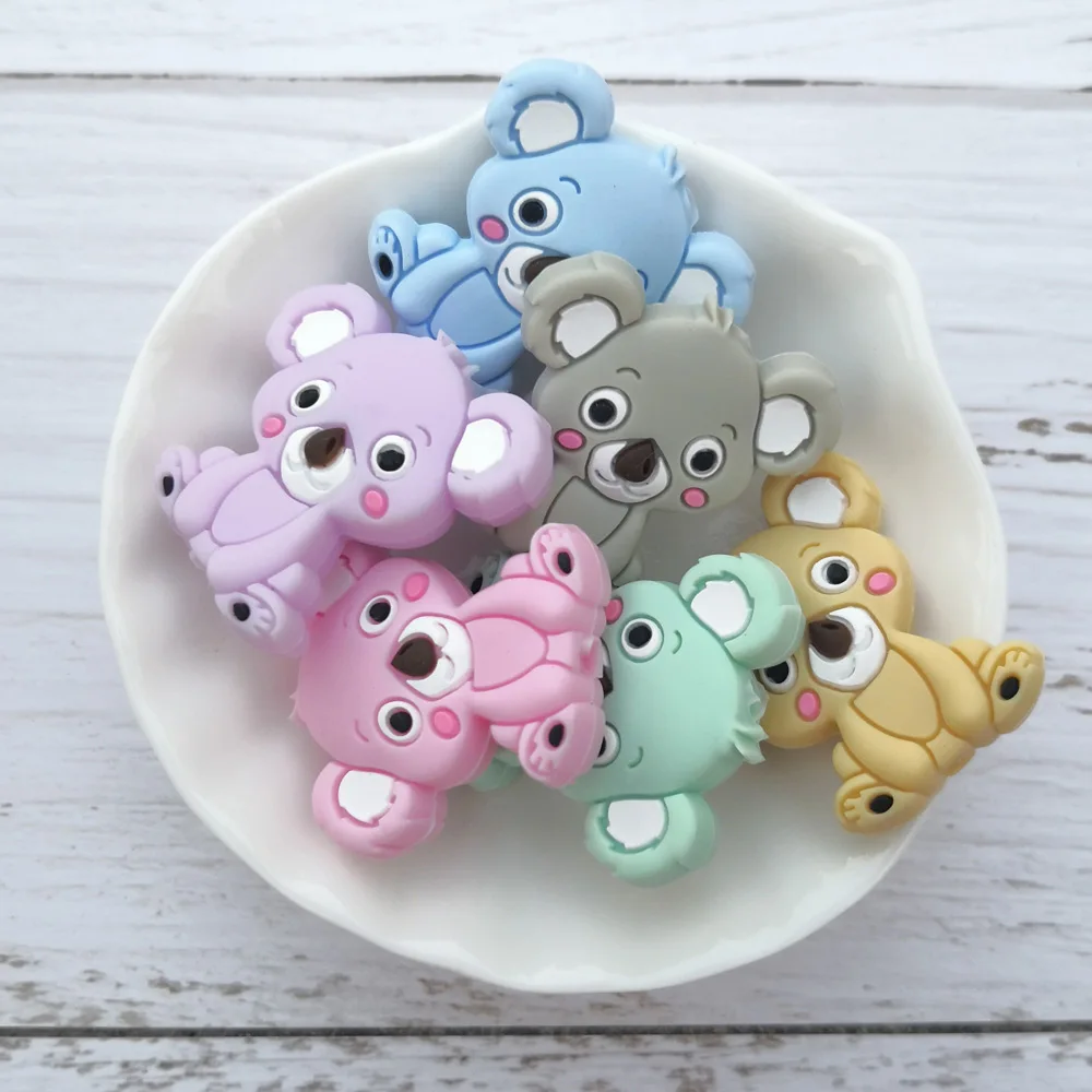-Силиконовые бусины Коала-Количество: 5 шт.Размер: 27*28,5*9,5 мм-Вы можете выбрать нужный цвет, просто оставьте сообщение в комментарии при размещении заказа.-Размер может немного отличаться из-за ручного измерения.-Стимулирует Сенсорное, визуальное и двигательное развитие.-Силиконовые бусины обеспечивают мгновенное облегчение прорезывания зубов и массаж десен.-100% BPA-free,FDA одобренный пищевой силиконовый бисер. Без фталатов, кадимов, свинца, ПВХ или металлов.-Легко моющиеся. Рекомендуется дезинфицирующие салфетки для пустышки.Стирать перед использованием!Никогда не оставляйте товар без присмотра!