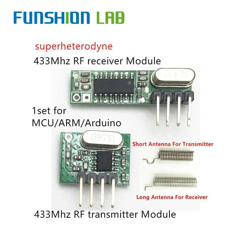FUNSHION LAB 433 mhz радиочастотный передатчик и приемник Superheterodyne ASK433 mhz модуль с антенной для Arduino Uno Wireless Diy Kits