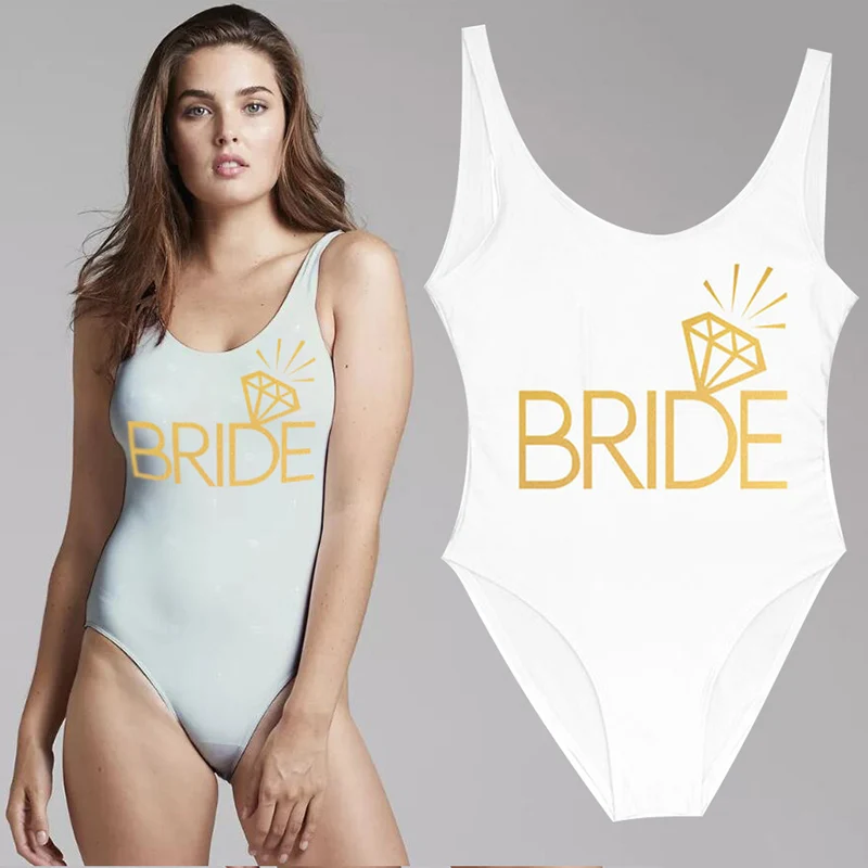 Команда Невесты Бикини Золотой буквенный принт бриллиант цельный купальник женский купальник для свадьбы мальчишника вечеринки купальный костюм Badpak